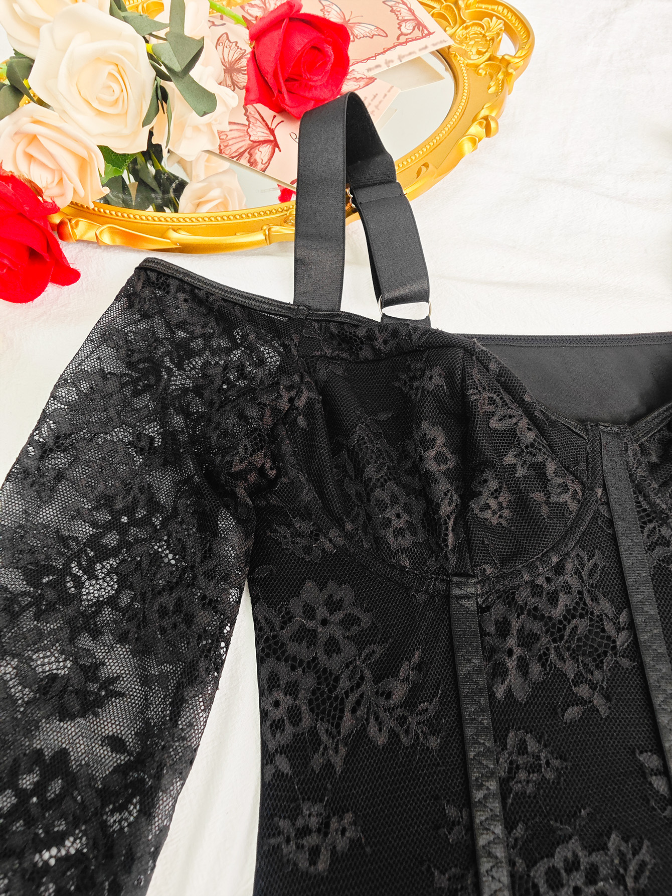 Color: Black [with underwire, no chest pads, hidden snap buttons at the crotch]