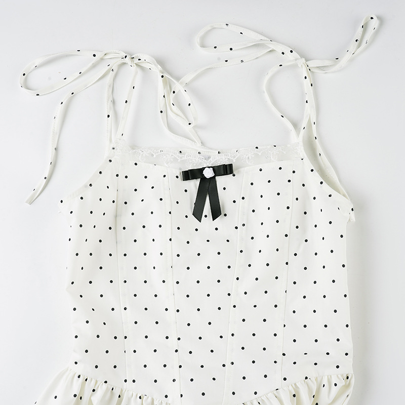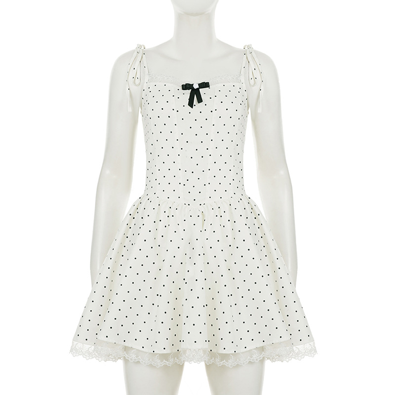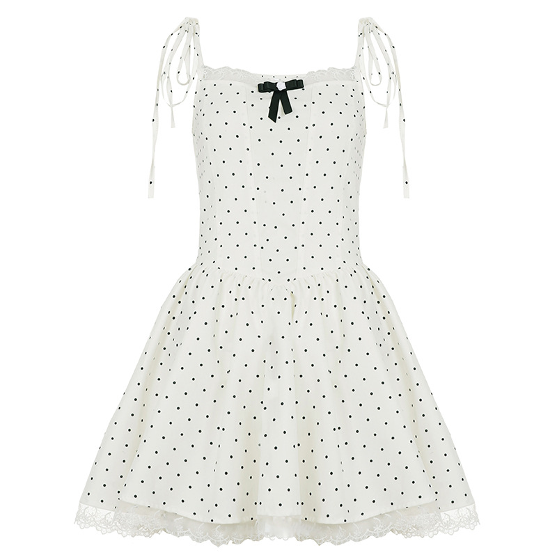 Sweet Girls Polka-Dot Bow-Trimmed Off-the-Shoulder Tie-Waist Dress
