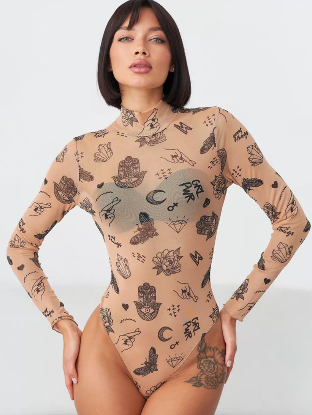 Women's Printed Long-sleeve Tight-fitting Bodysuit