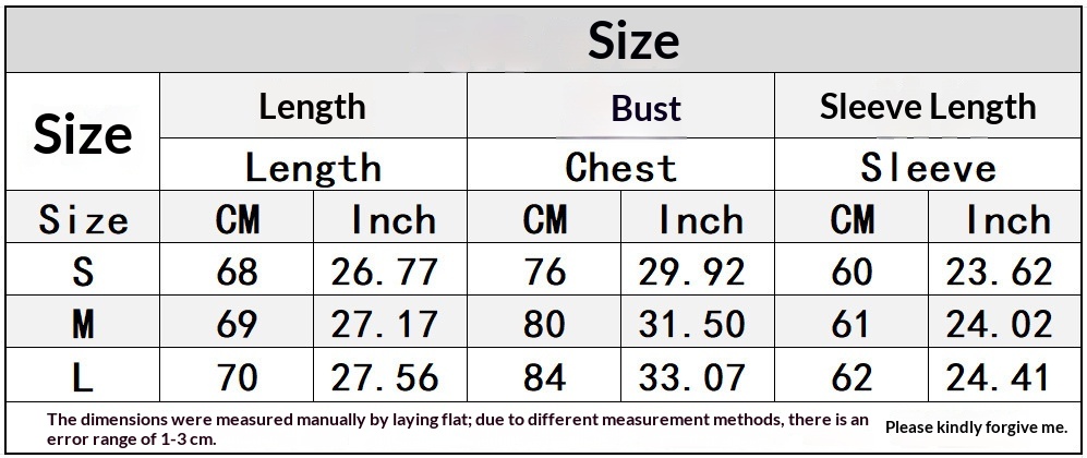 1. Asian sizes are 1 to 2 sizes smaller than European and American people. Choose the larger size if your size between two sizes. Please allow 2-3cm differences due to manual measurement. 2. Please check the size chart carefully before you buy the item, if you don't know how to choose size, please contact our customer service. 3.As you know, the different computers display colors differently, the color of the actual item may vary slightly from the following images.