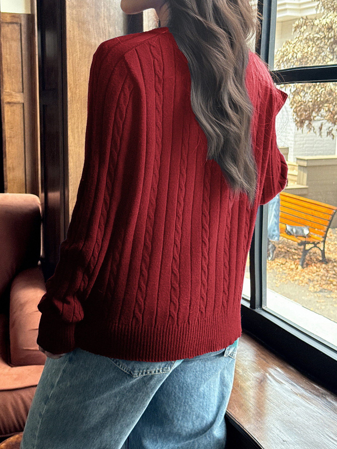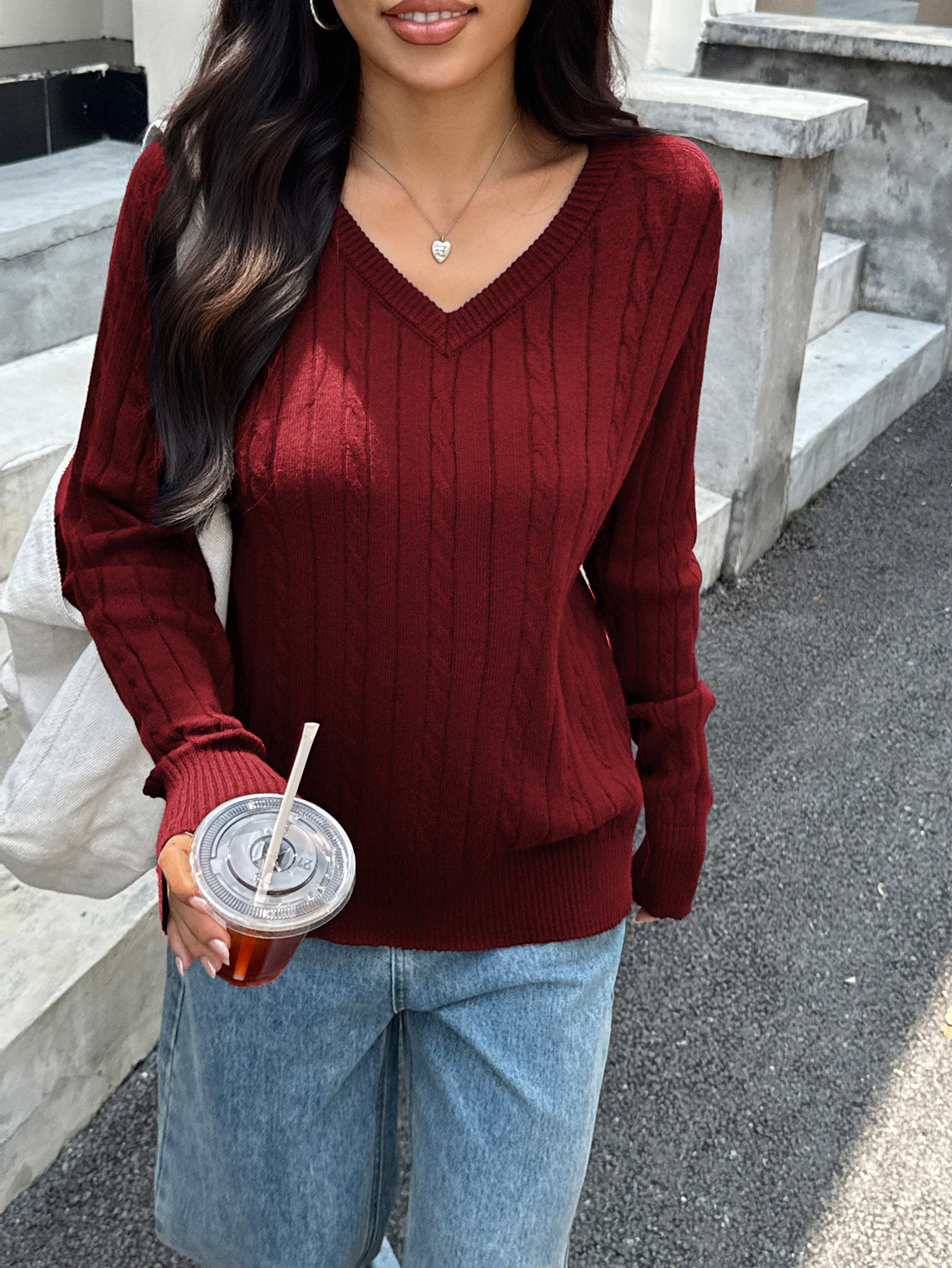 Women's V-neck Woolen Long-sleeved Sweater