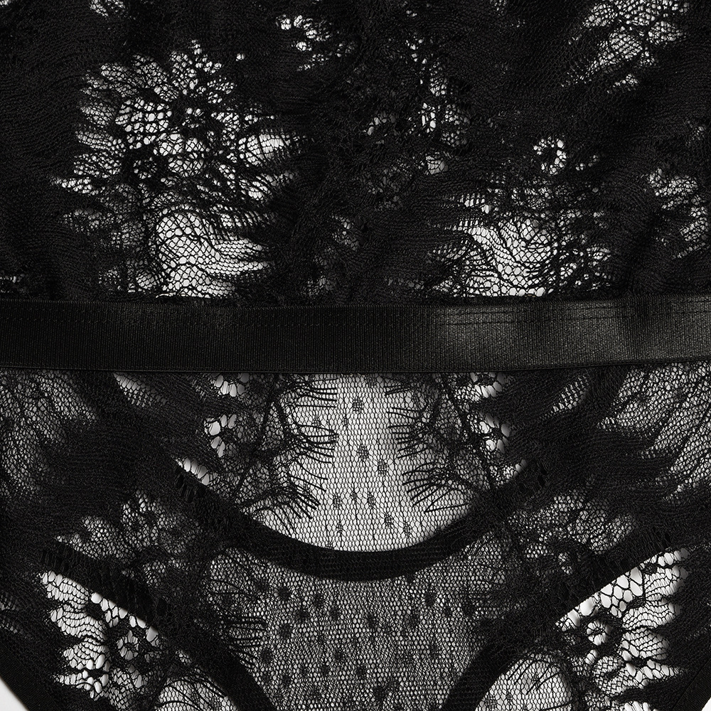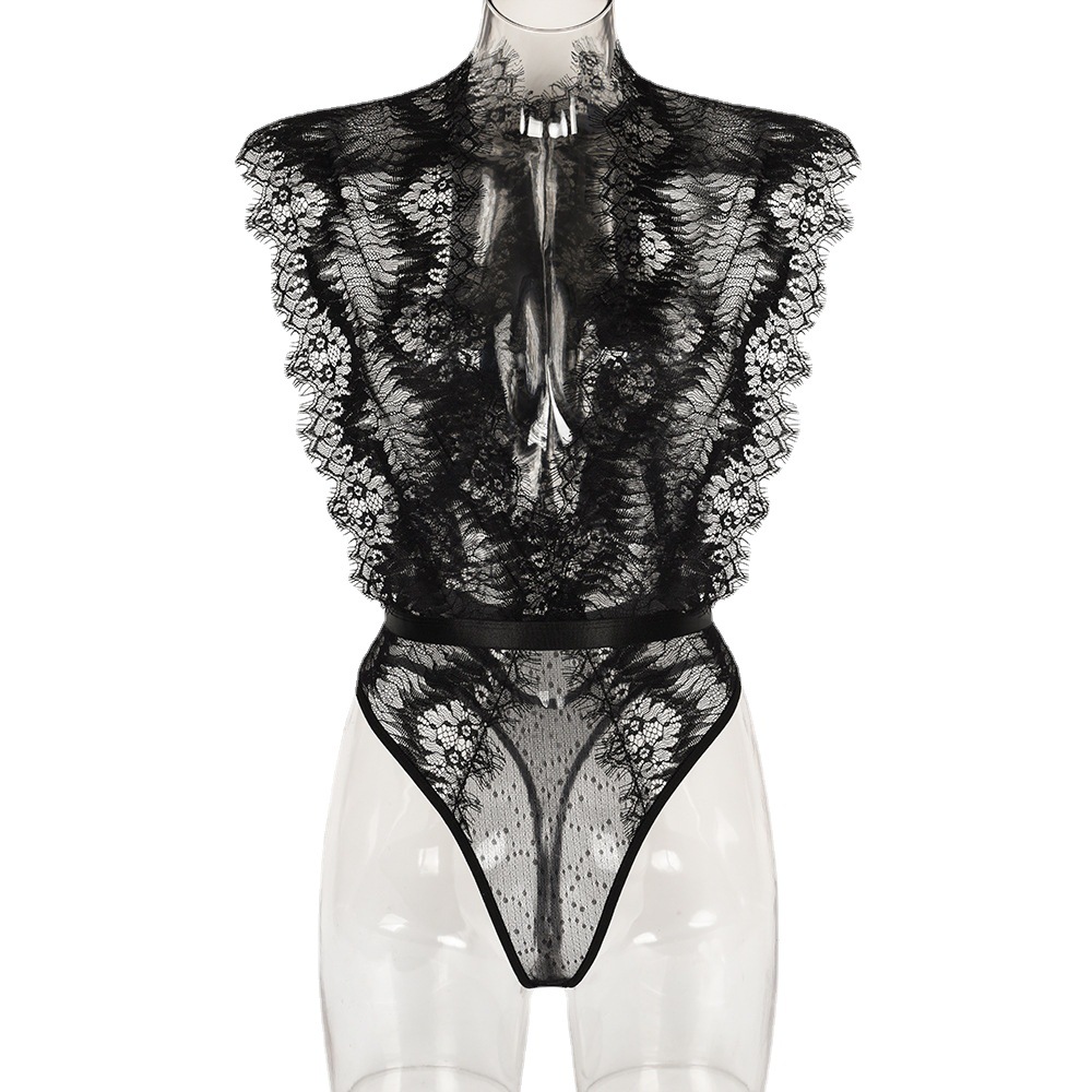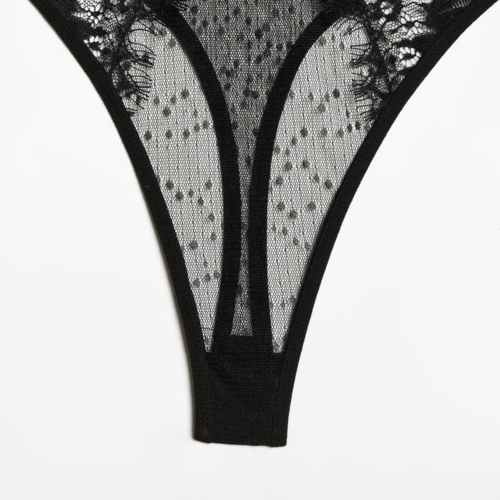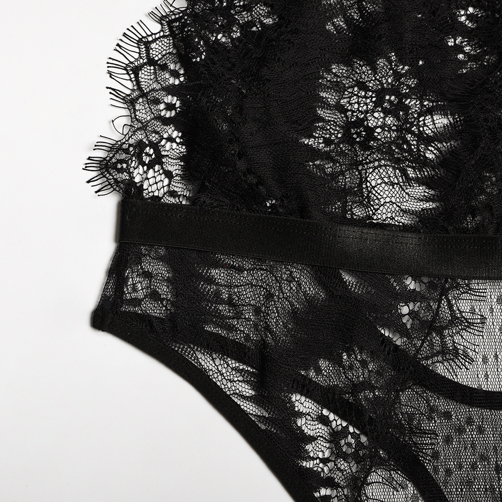 Eyelash Lace Stitching Deep V Slim Bodysuit
