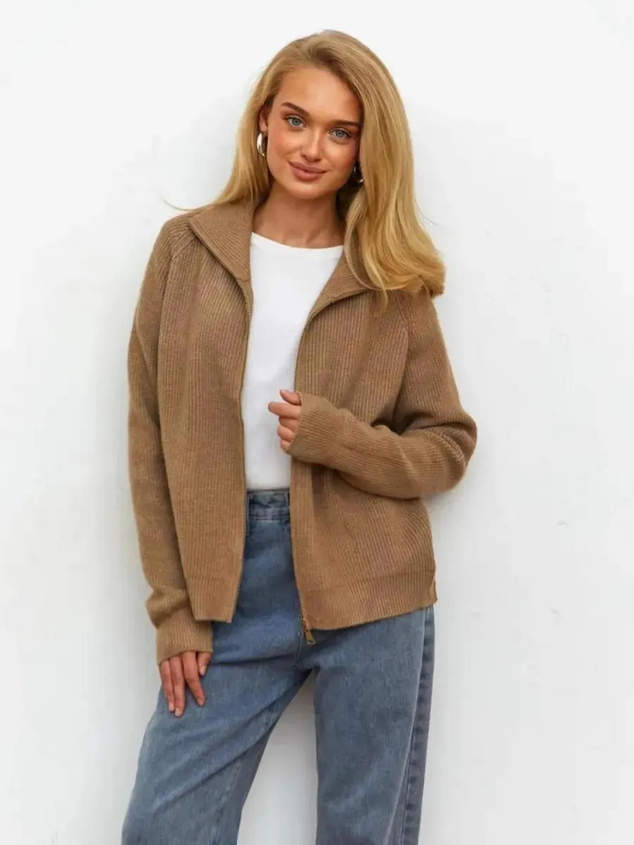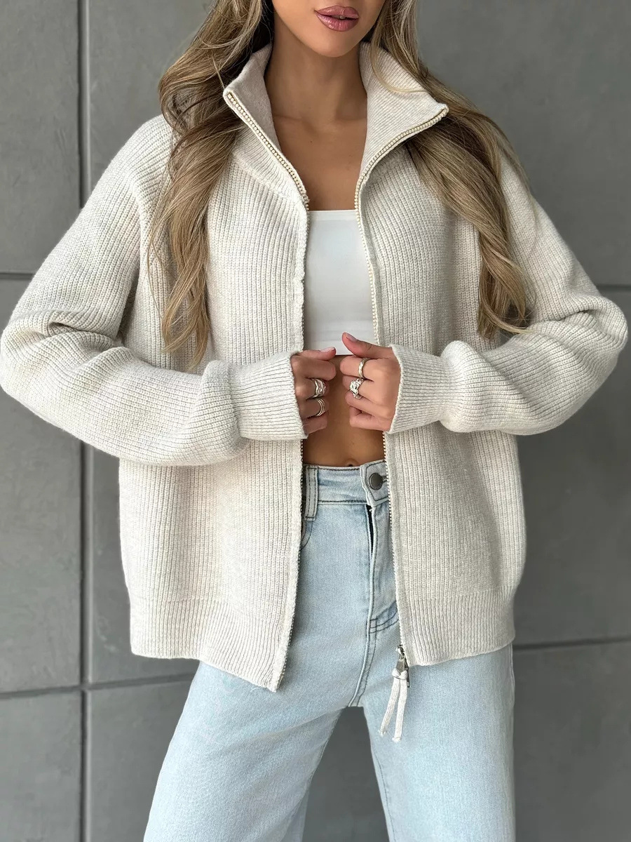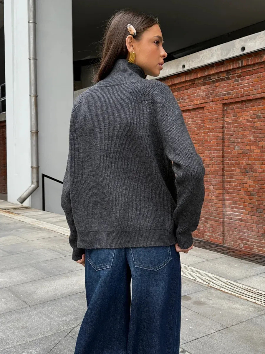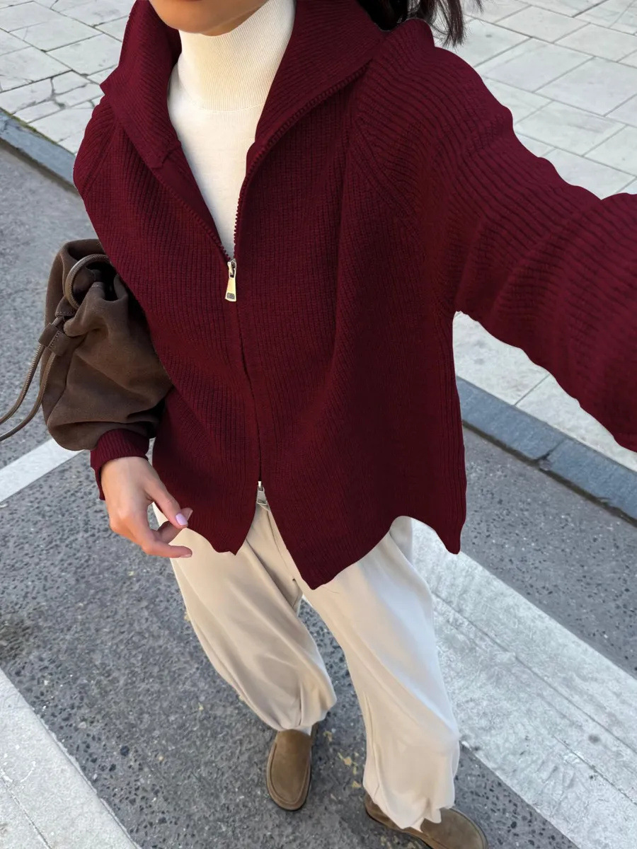 Women's Casual Knit Dual-zip Solid Color Sweater