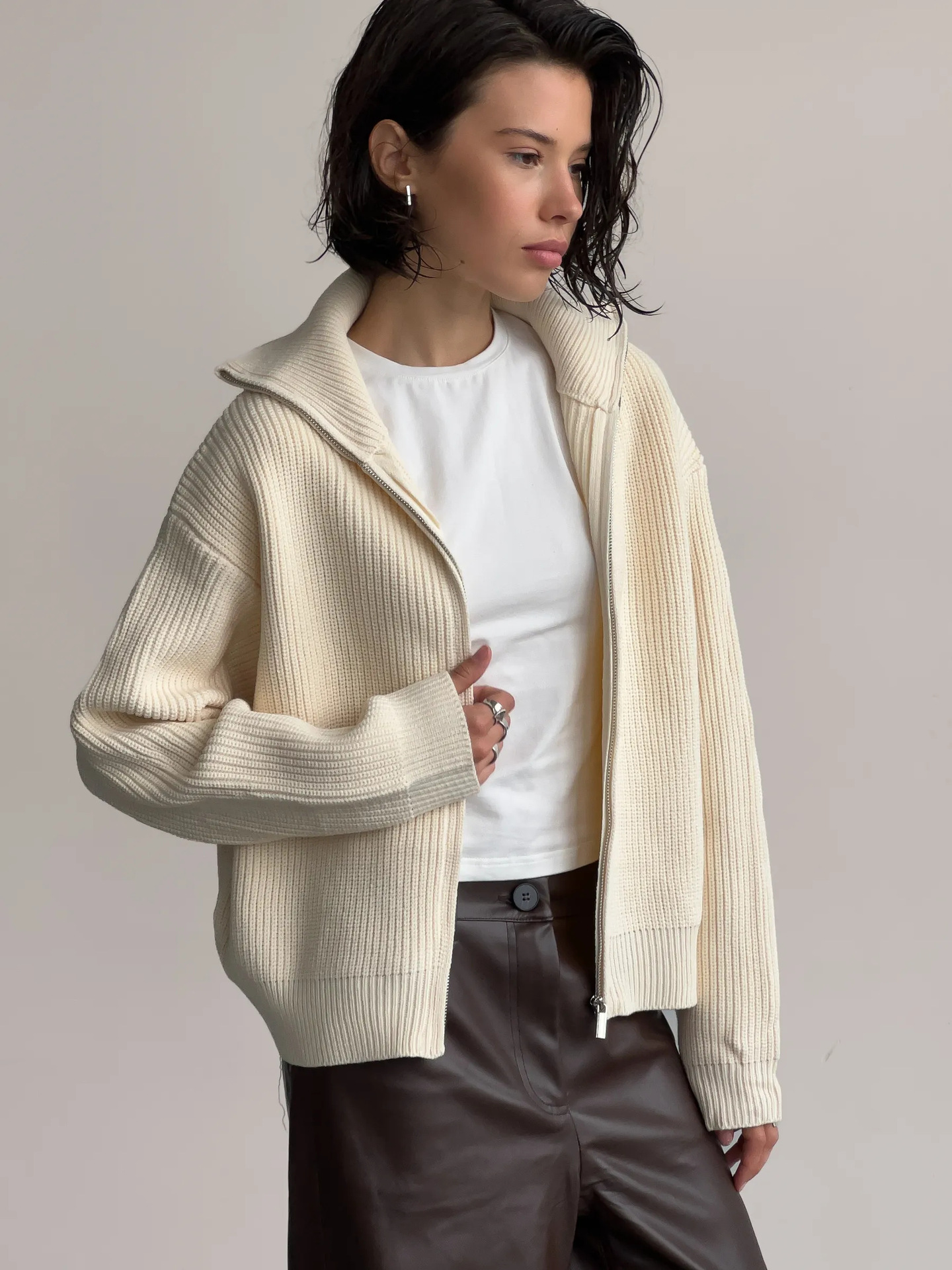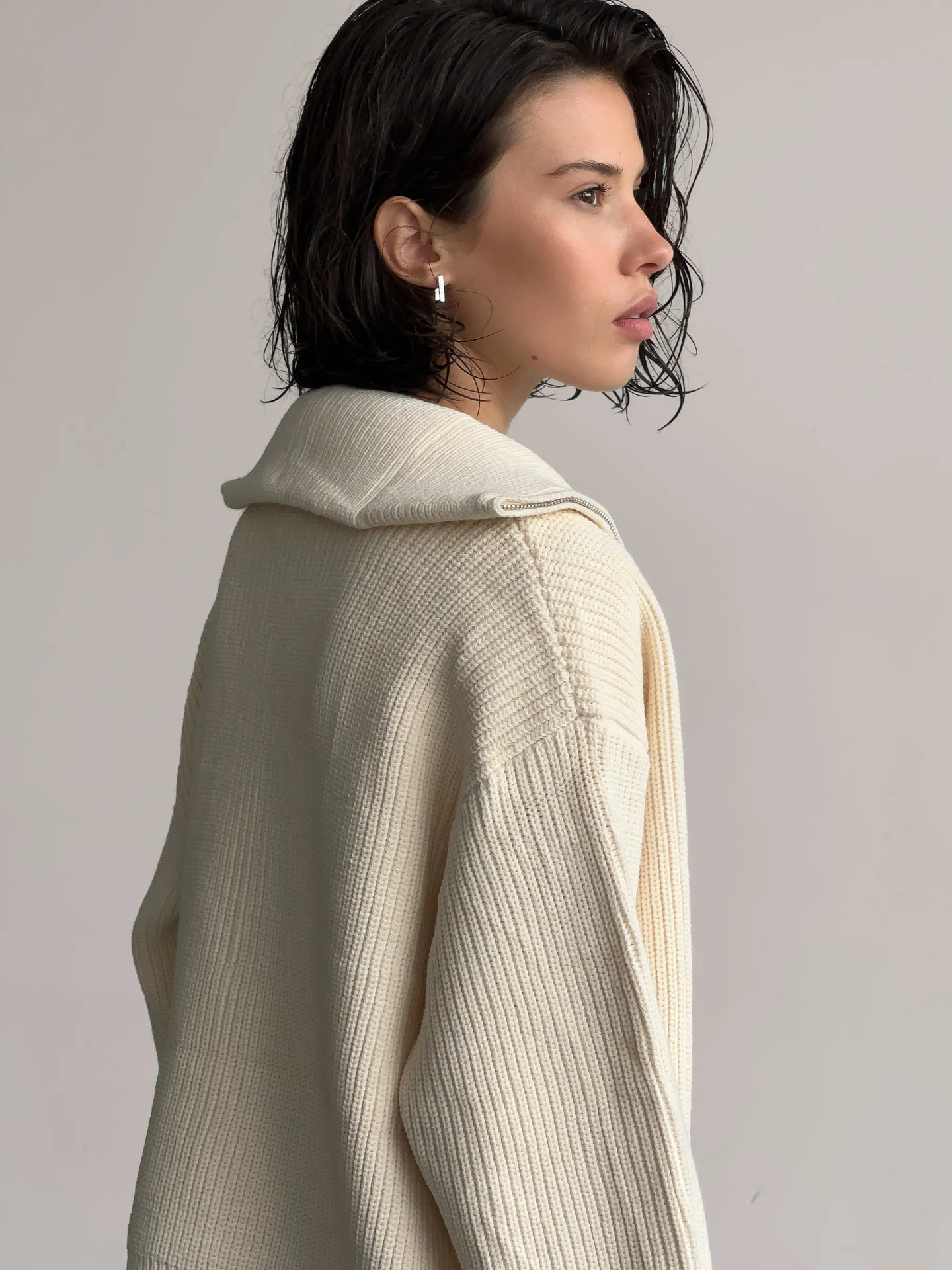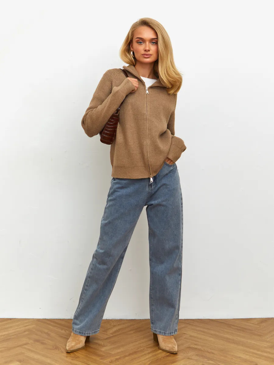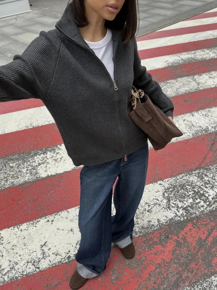 Women's Casual Knit Dual-zip Solid Color Sweater