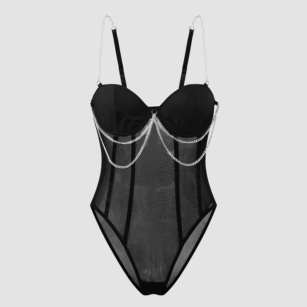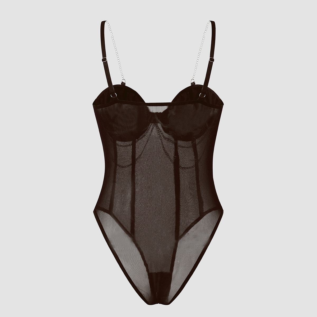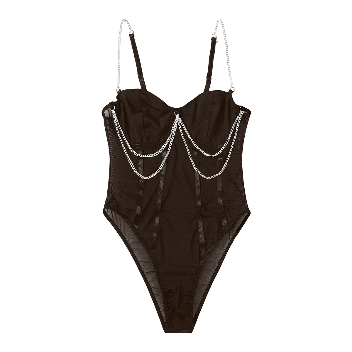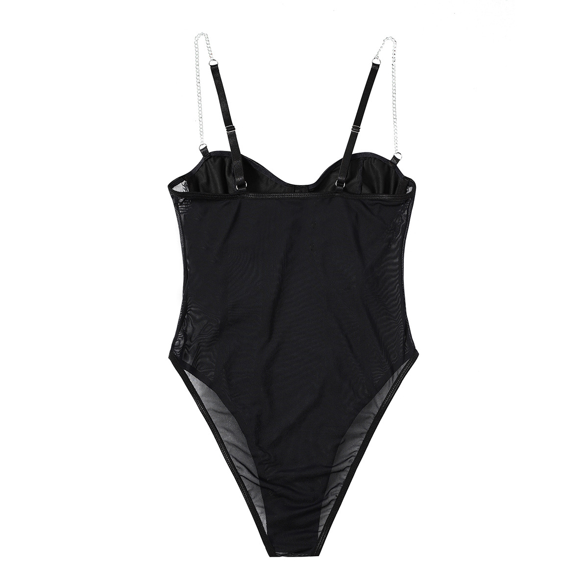 Womens Lace Mesh Sheer Jumpsuit With A Designer Metal Chain Strap Design Τιμή πώλησης€38,68