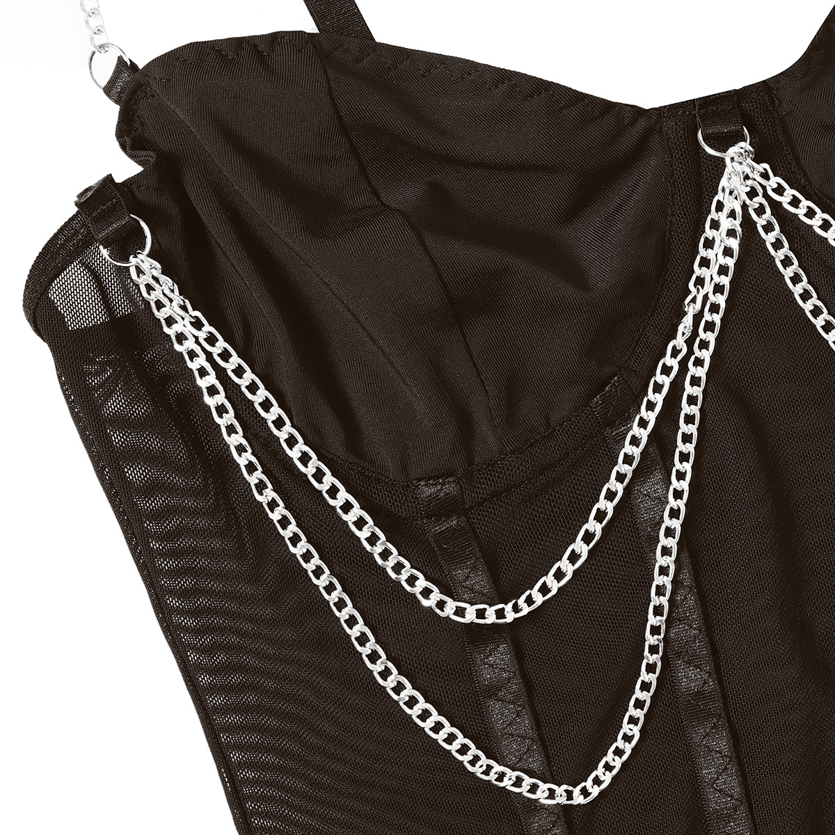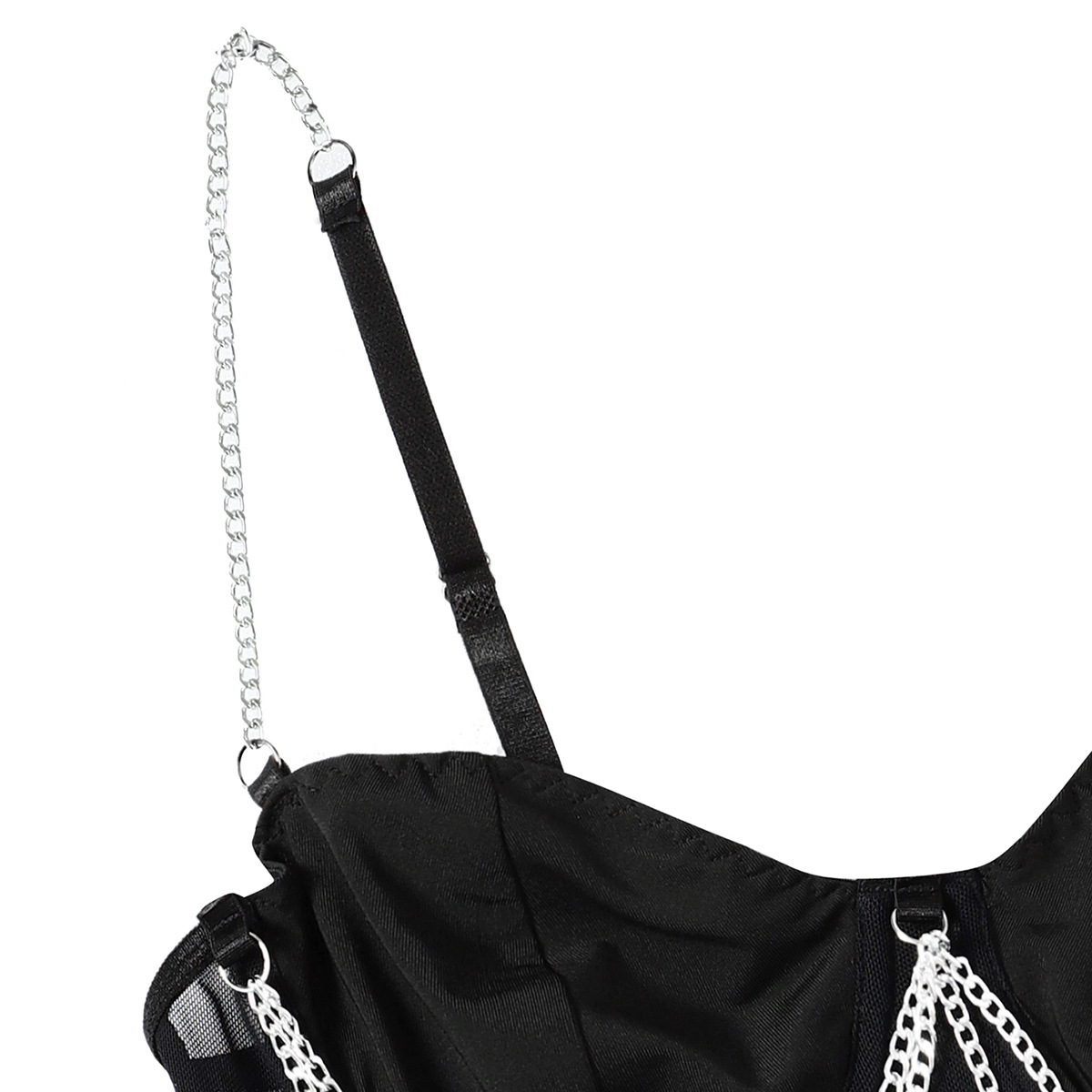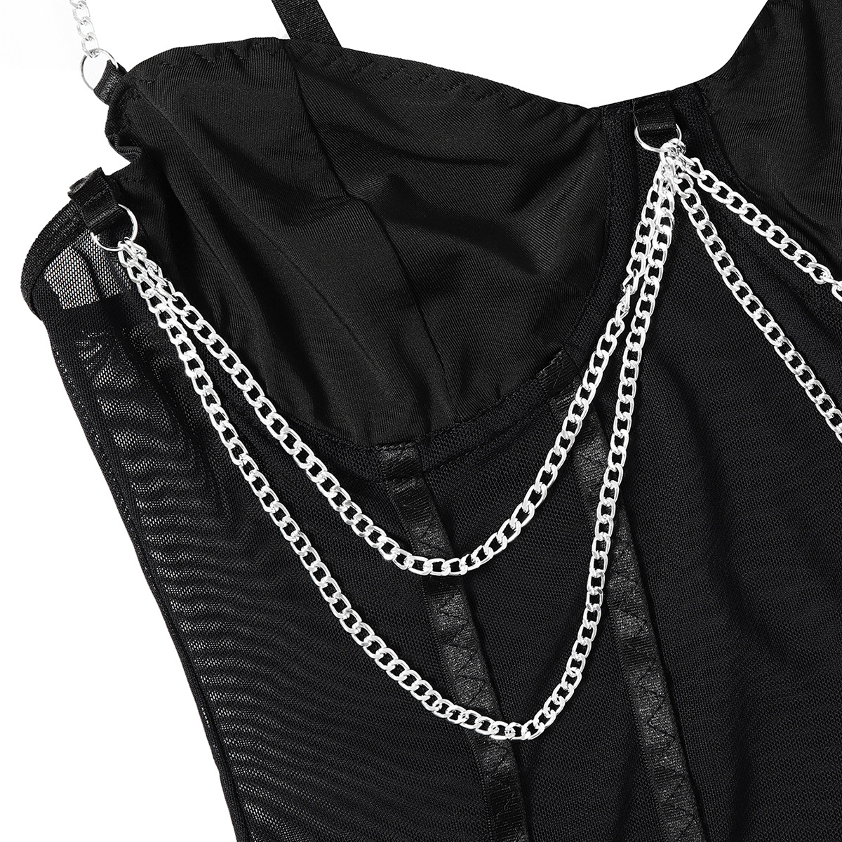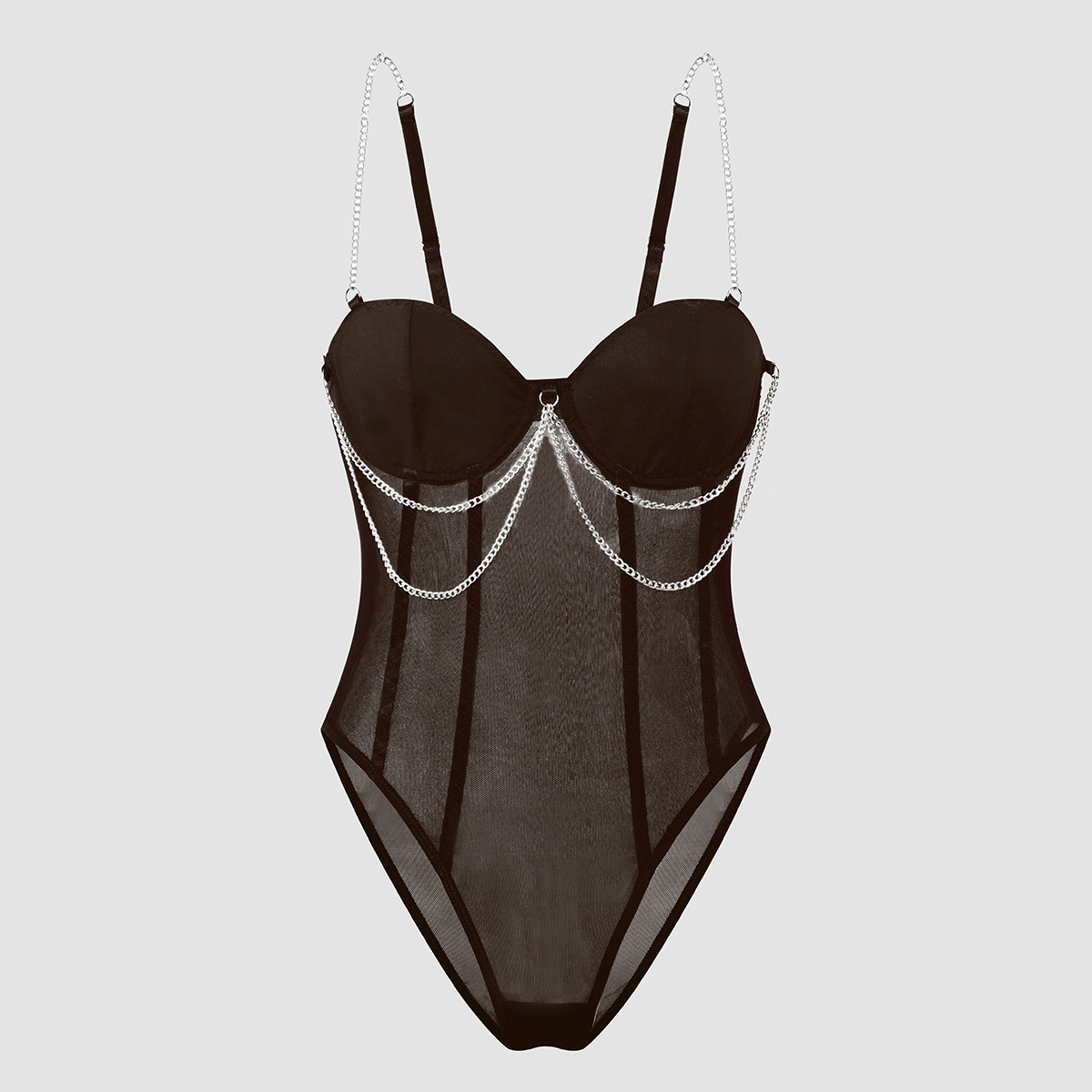 Womens Lace Mesh Sheer Jumpsuit With A Designer Metal Chain Strap Design Τιμή πώλησης€38,68