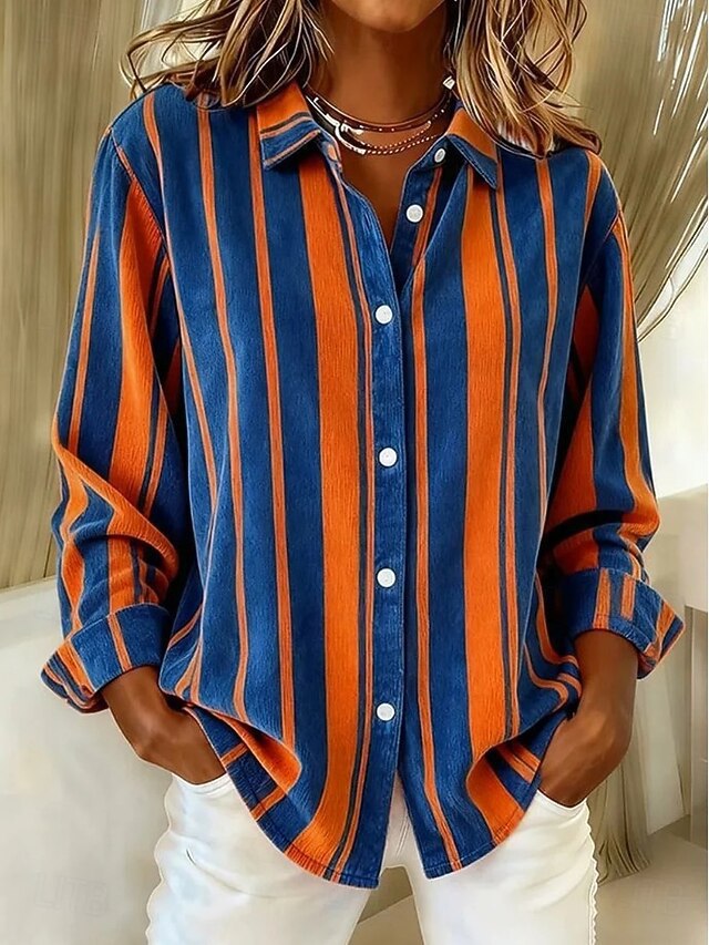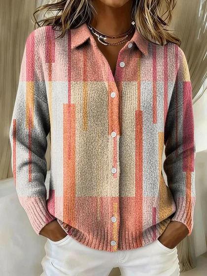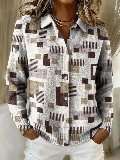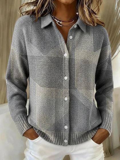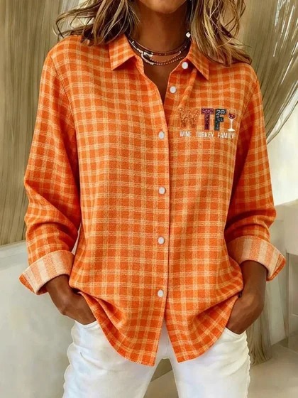 Womens Retro Plaid Printed Long-Sleeve Shirt With Star Design
