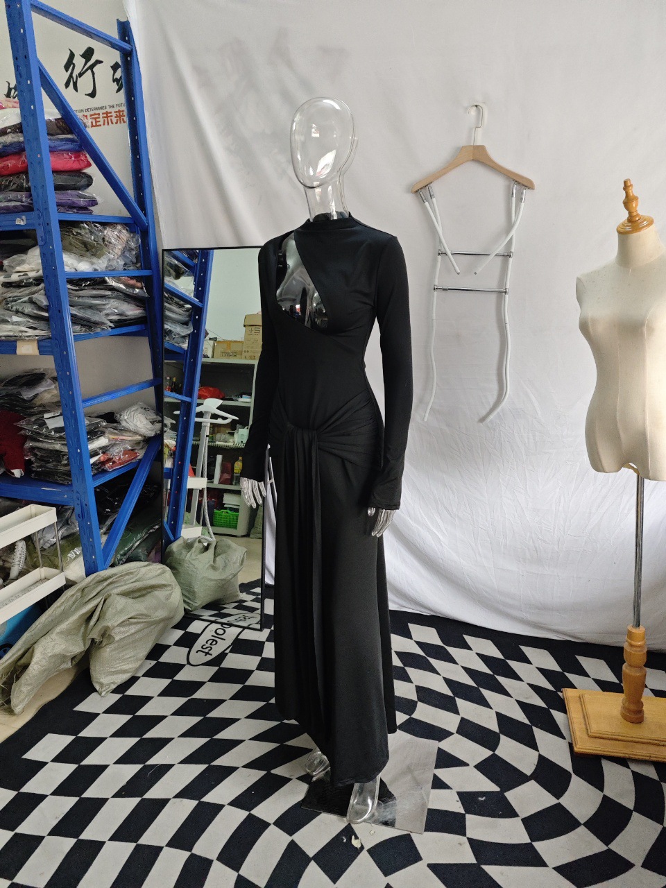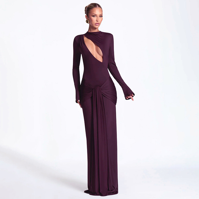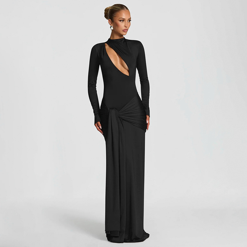 Womens Tight-fitting, Mock-neck, Long-sleeve Dress