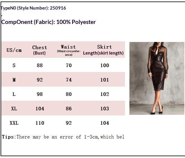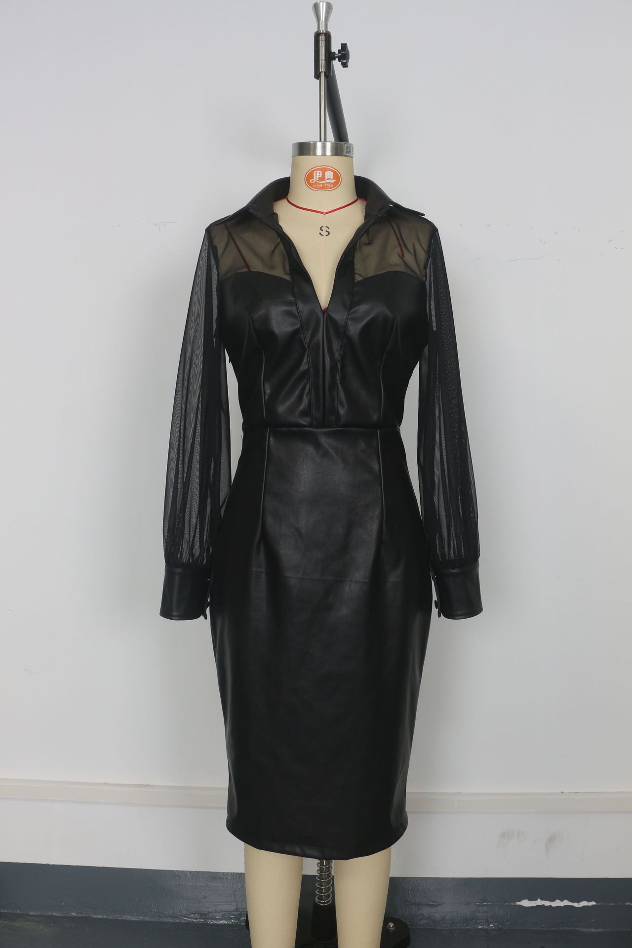 Sheath Dress With Mesh And PU Leather Panels Slim Fit V-Neck Design