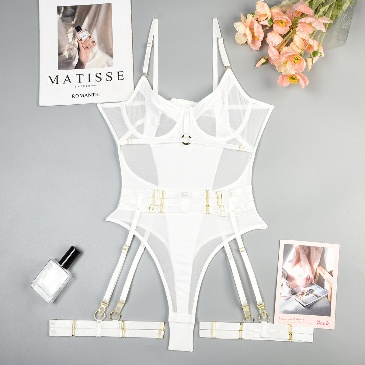 Sheer Mesh Lingerie With A Push-up Design Open-back Shaping