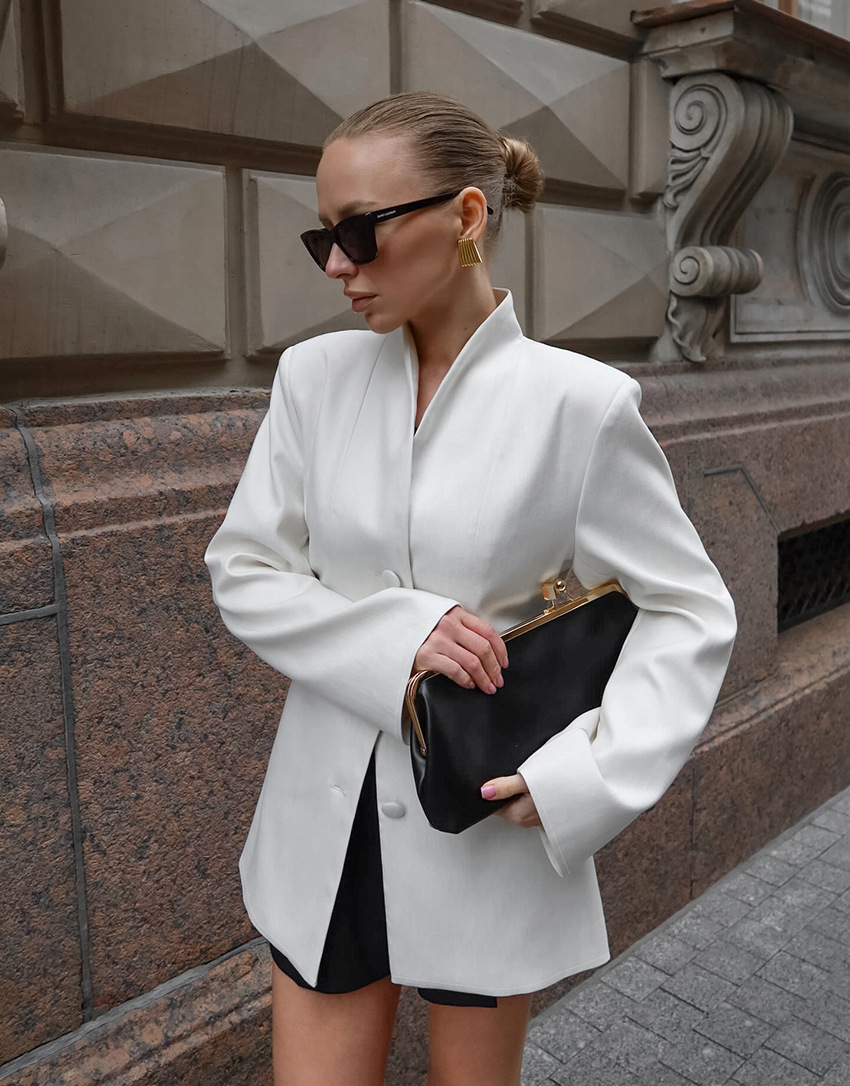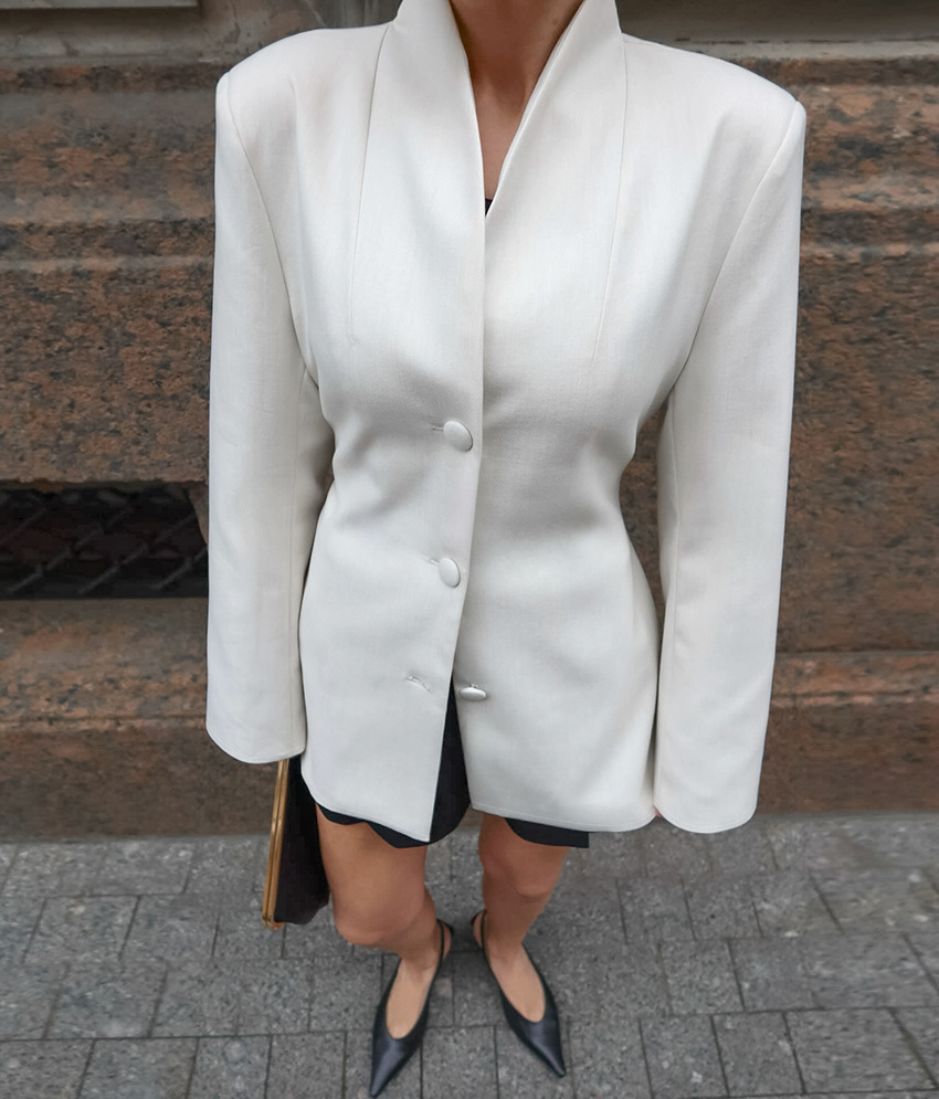 White Simple Waist Fitted Slim Fit Small Business Suit מחיר מבצע€63,80