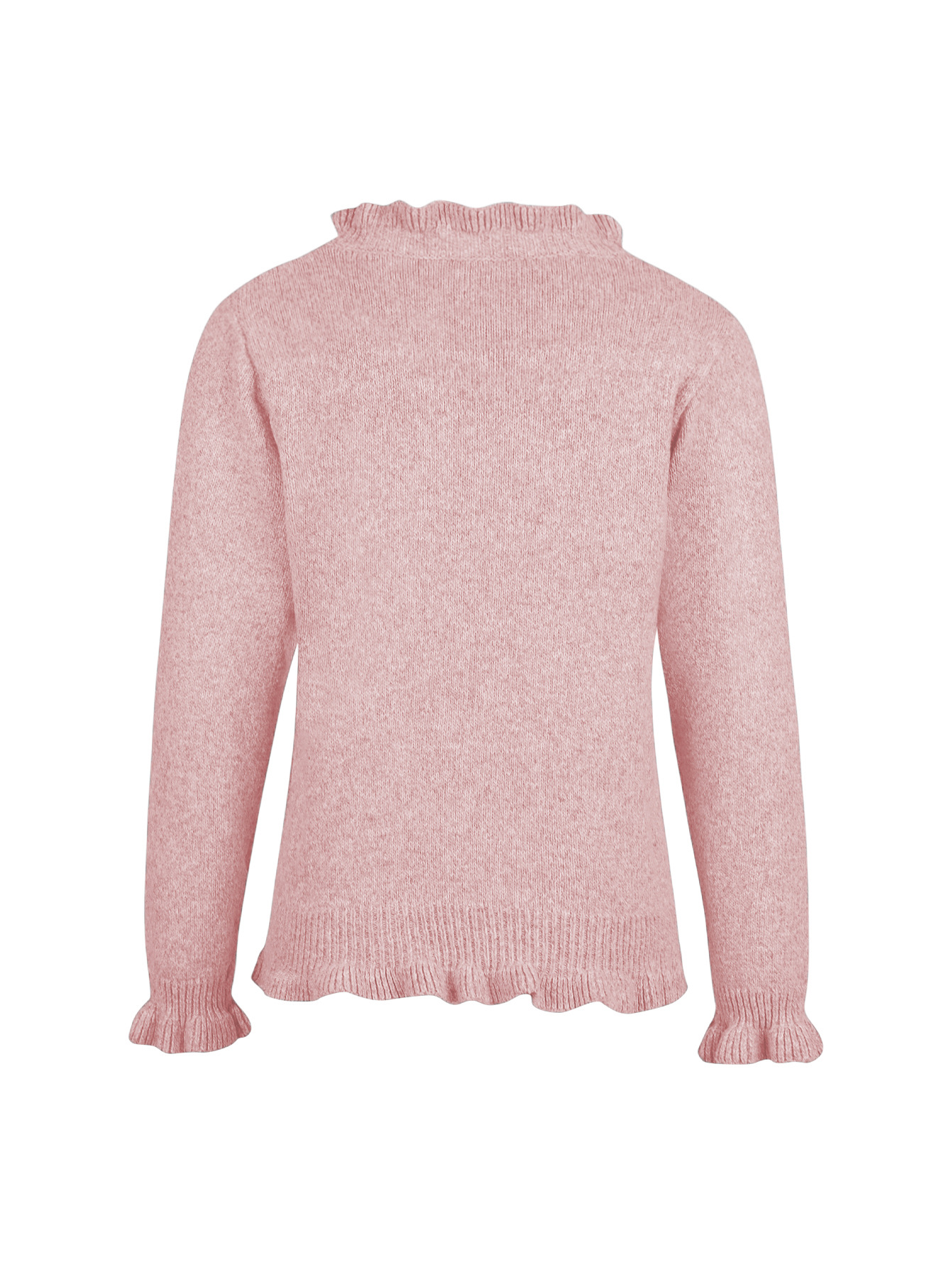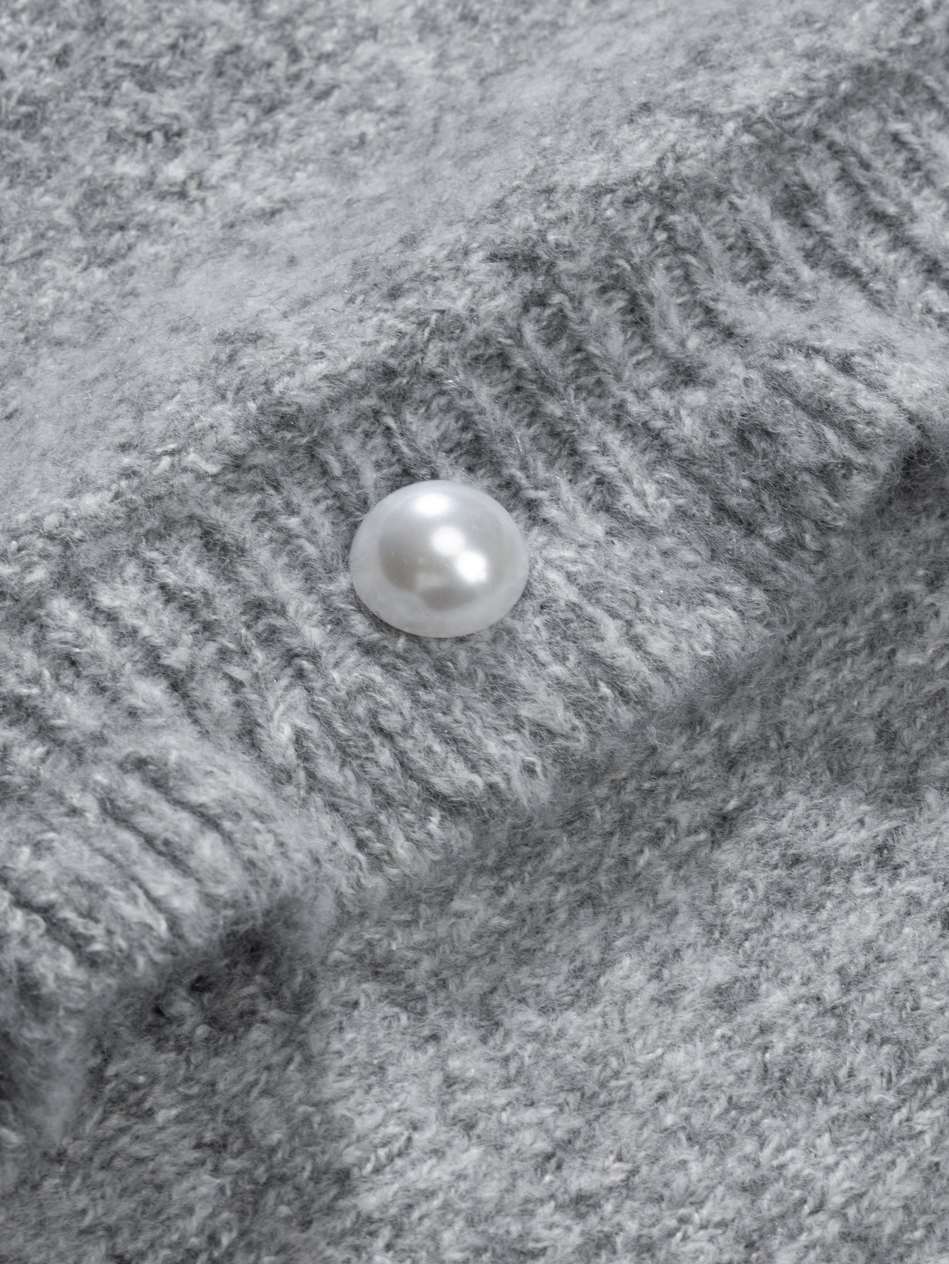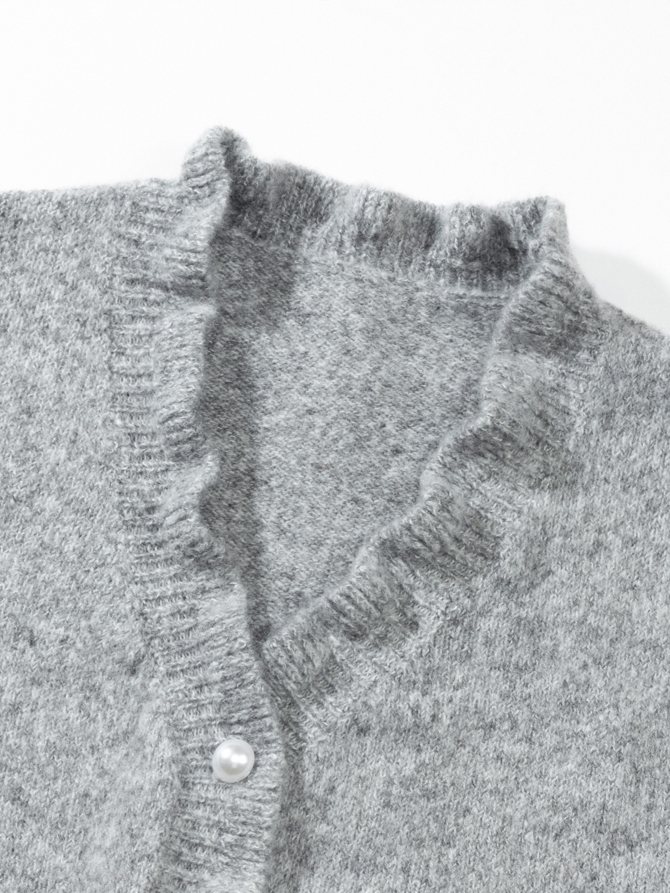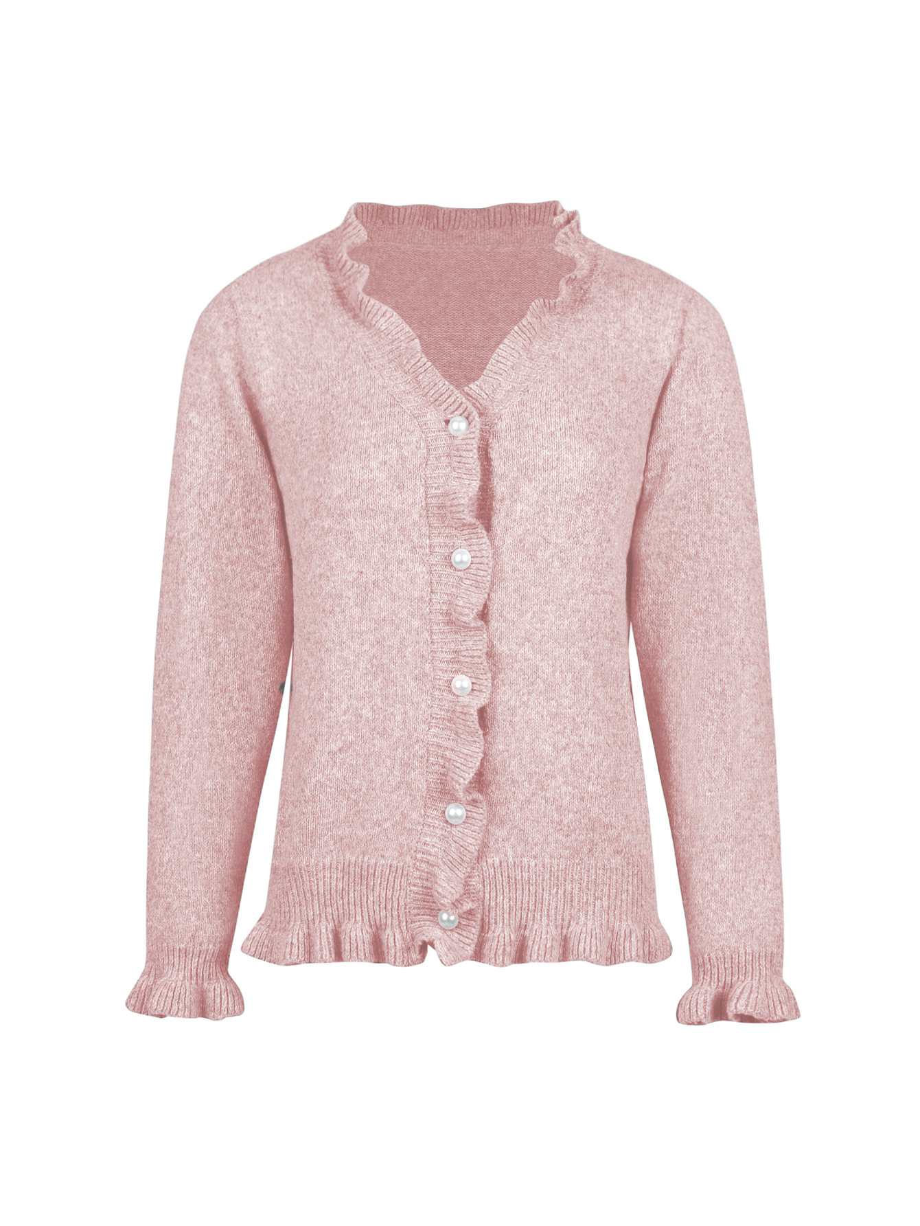 Wooden Ear Rib Knitted Cardigan Pearl Button Sweater