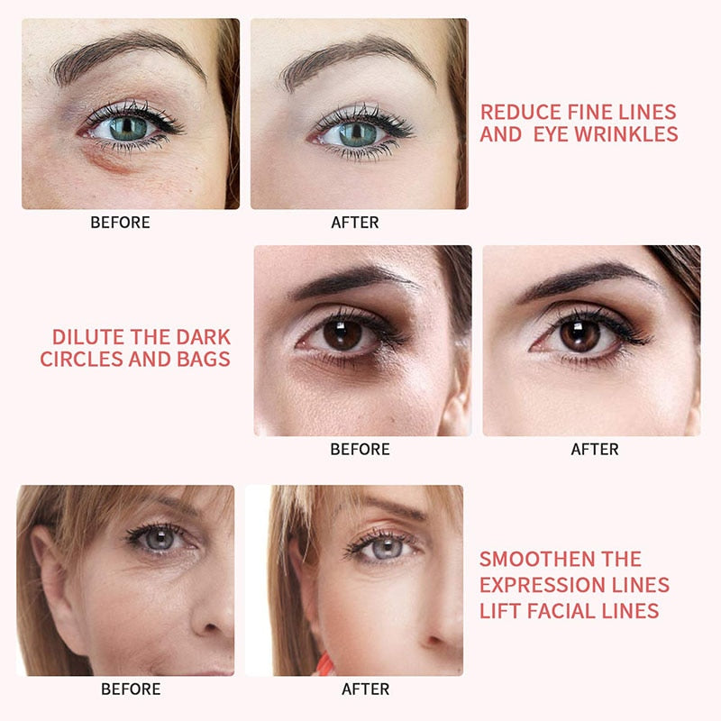 Apply the eye cream evenly around the eyes, press and hold for 3 seconds to switch on, select "Eye Care" mode, and gently massage the massage device from the inner corner of the eye to the end of the eye. No more than 4 minutes each time, massage until absorption can stop, you can use it once in the morning and evening.Sensitive muscles should be moderately reduced in number