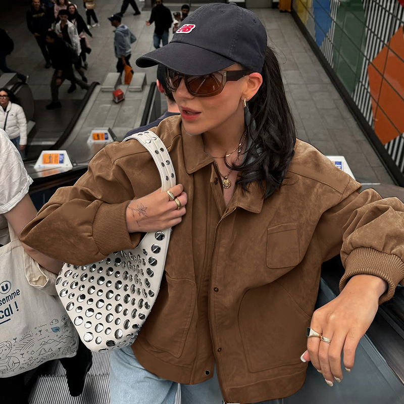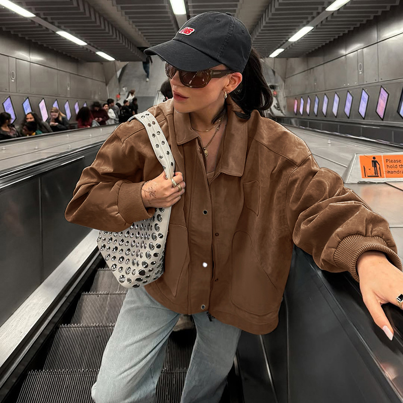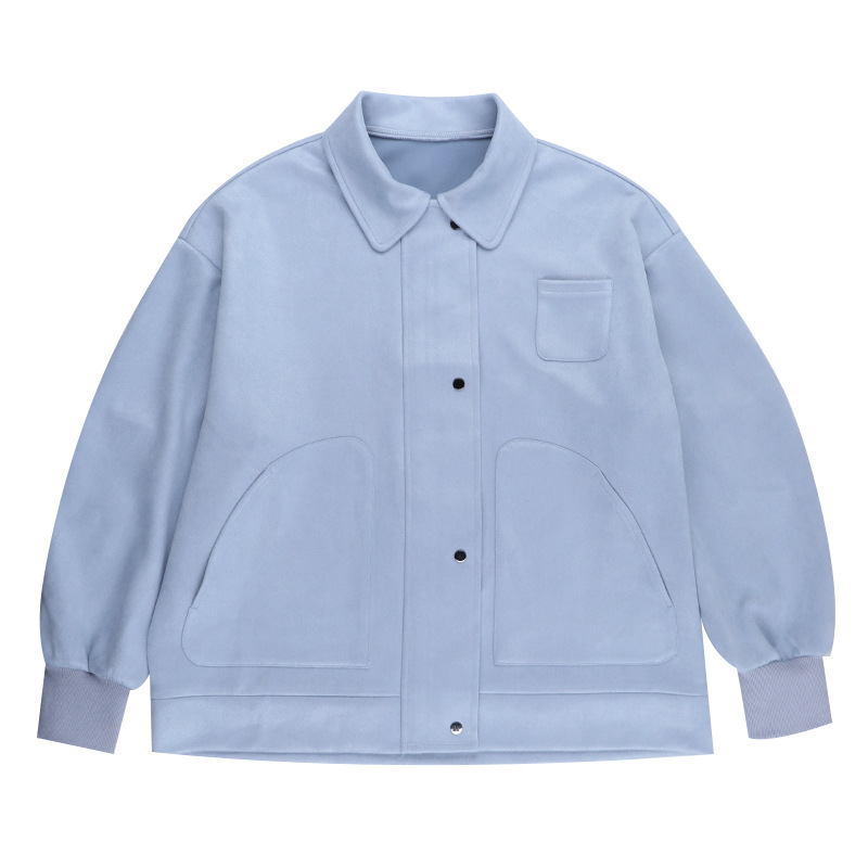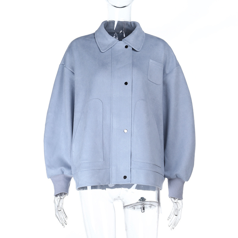 Casual Solid Color Loose Long Sleeves Autumn And Winter Polo Collar Jacket