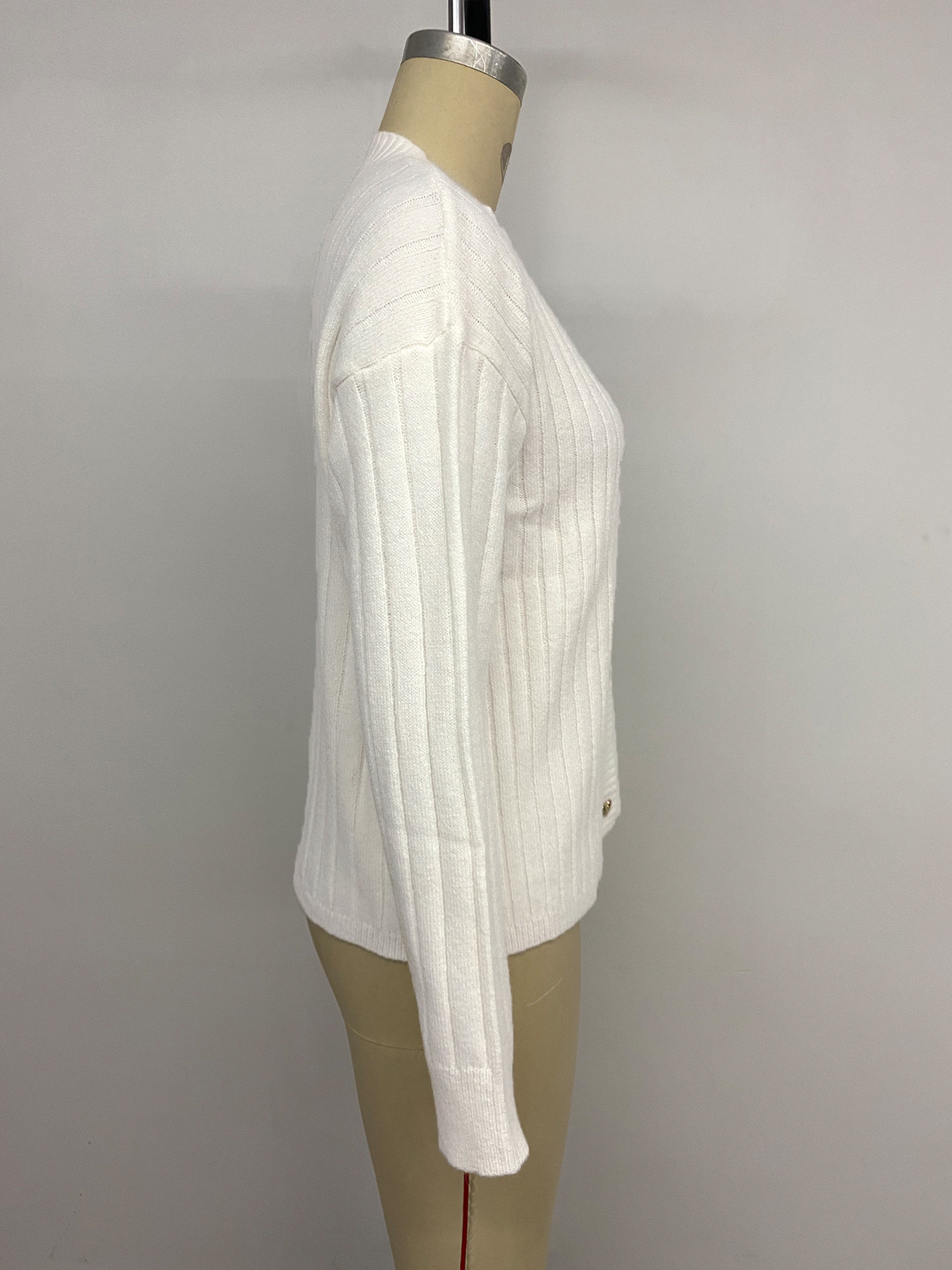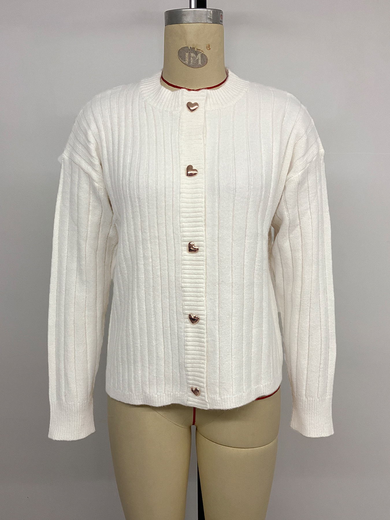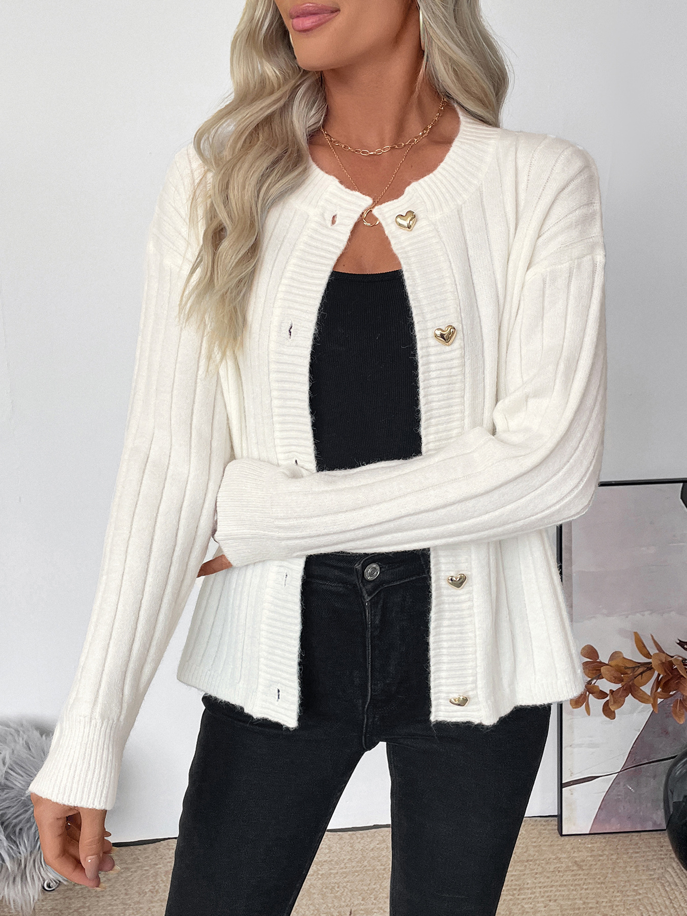 Metal Heart Button Solid Color Sweater Coat Cardigan