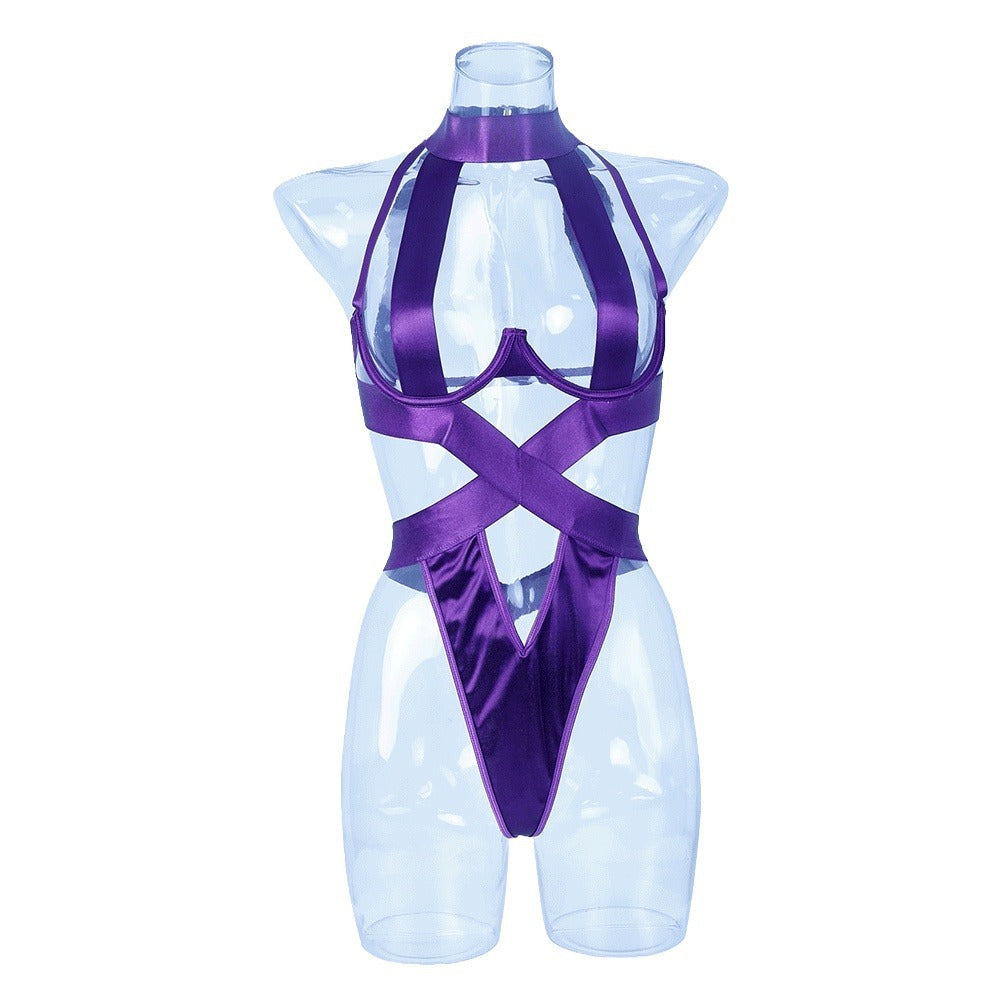 New sexy women's rope and hollow hanging neck jumpsuit, sexy lingerie