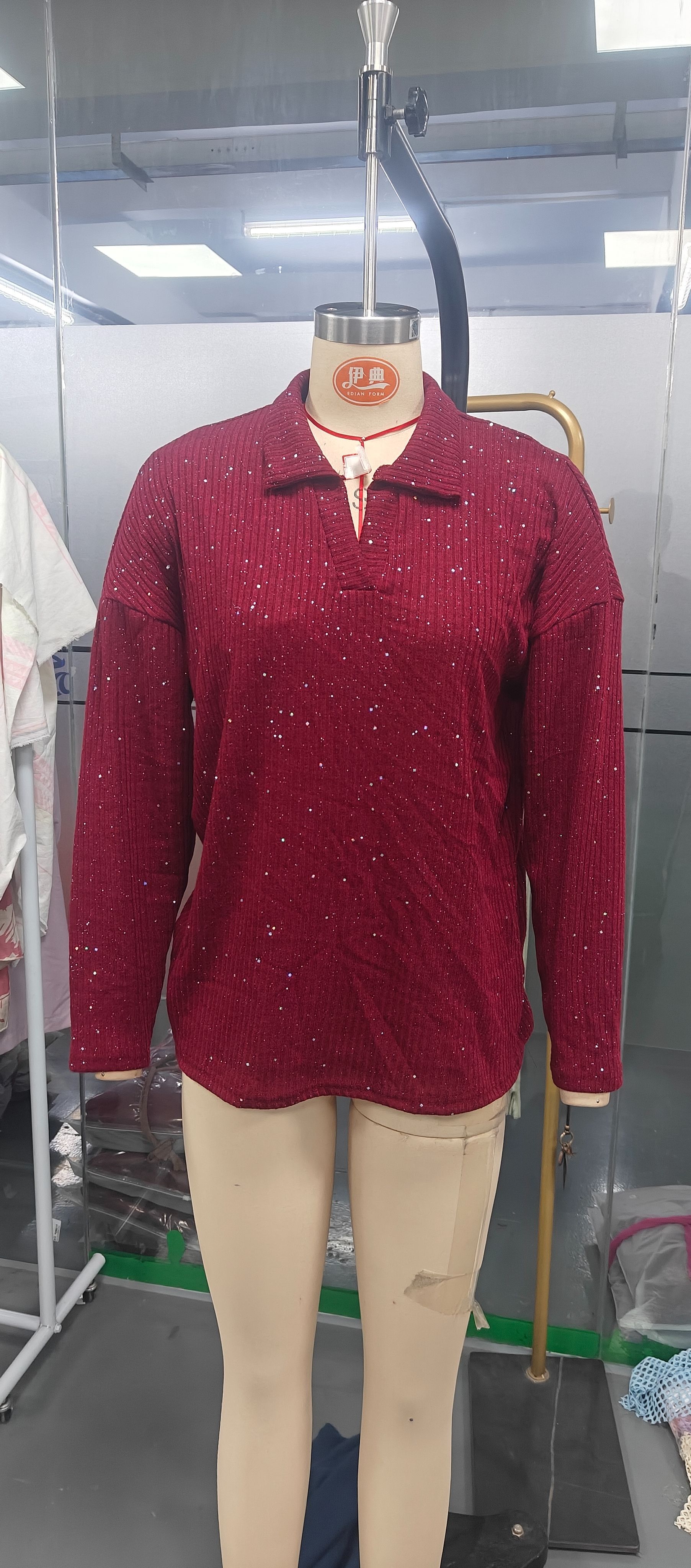 New Solid-color Long-sleeve Top Shimmering Sweater