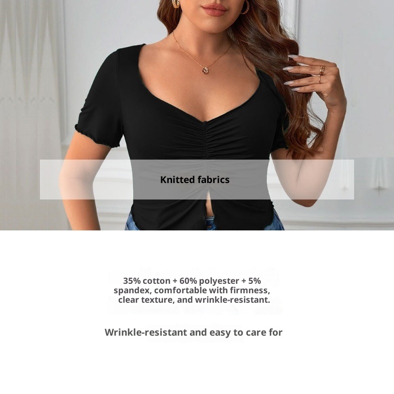 Sexy V-neck Slim Square Neck Short Sleeve Short Irregular Top For Women