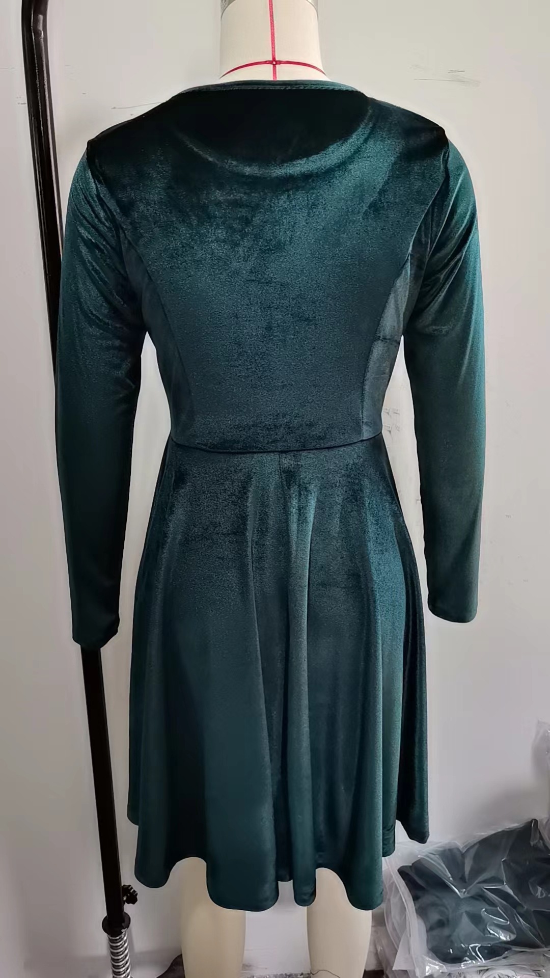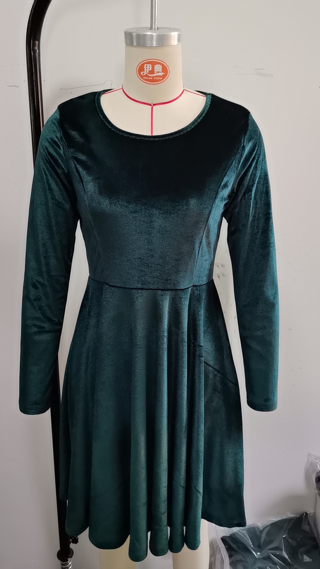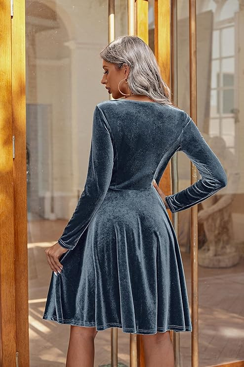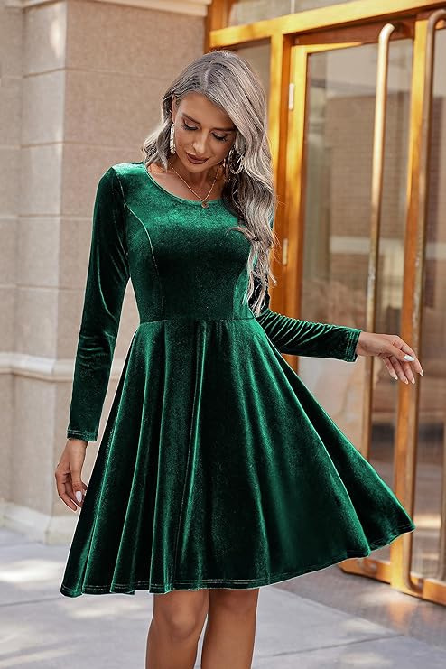Womens Solid-Color Long-Sleeve Crew-Neck Velvet Maxi Dress For Valentines Day