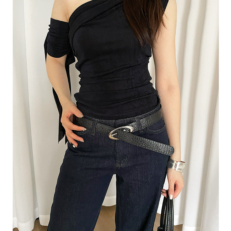 Fashion Lychee Pattern Belt Women's Oval Buckle Red High-grade All-matching