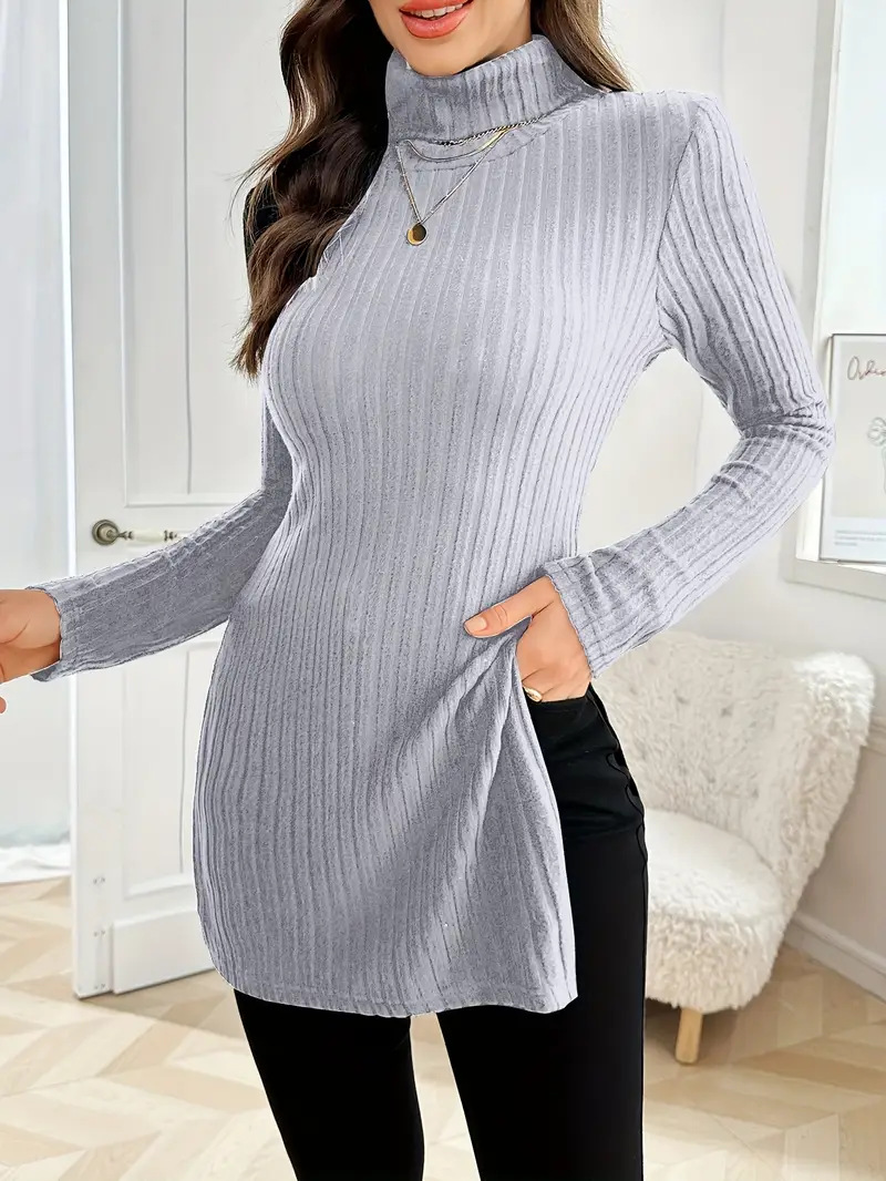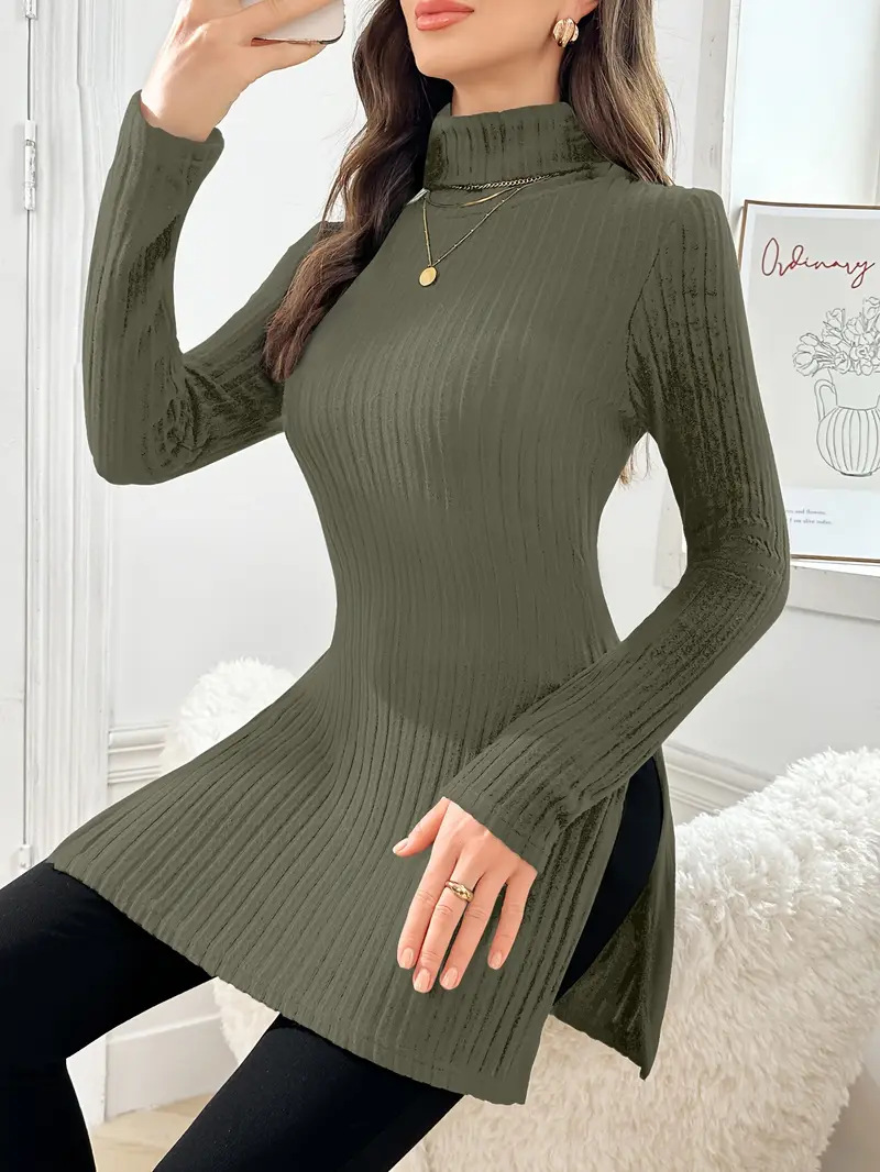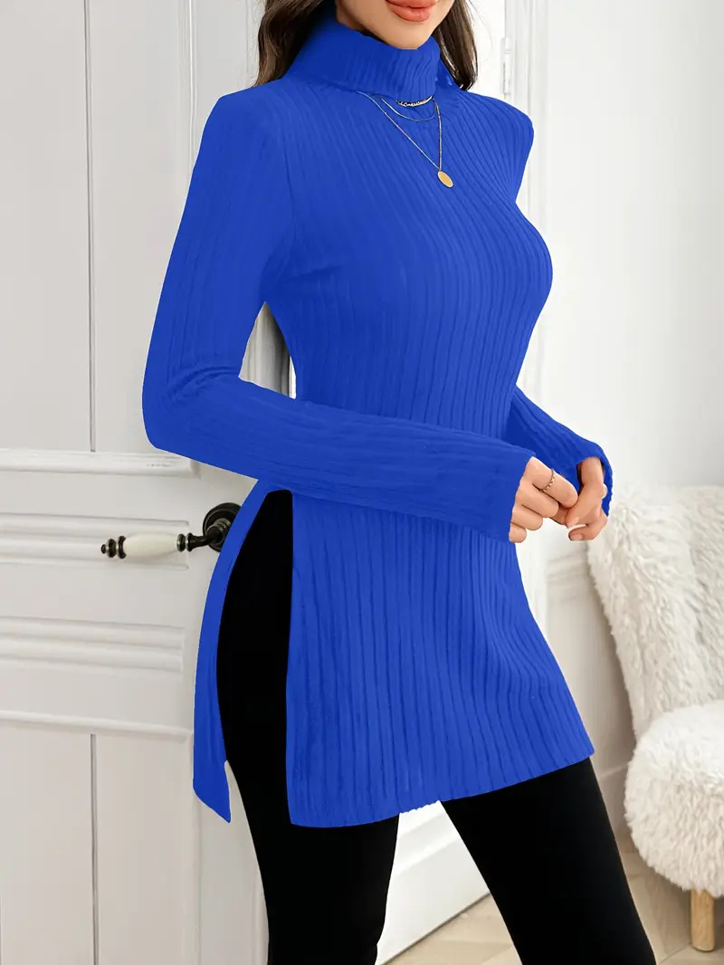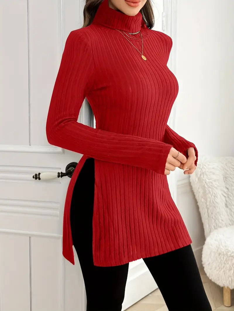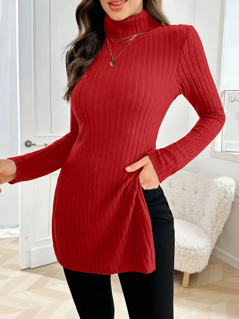 Plus Size Women's Turtleneck Pullover Side Slit Mid-length Sweater