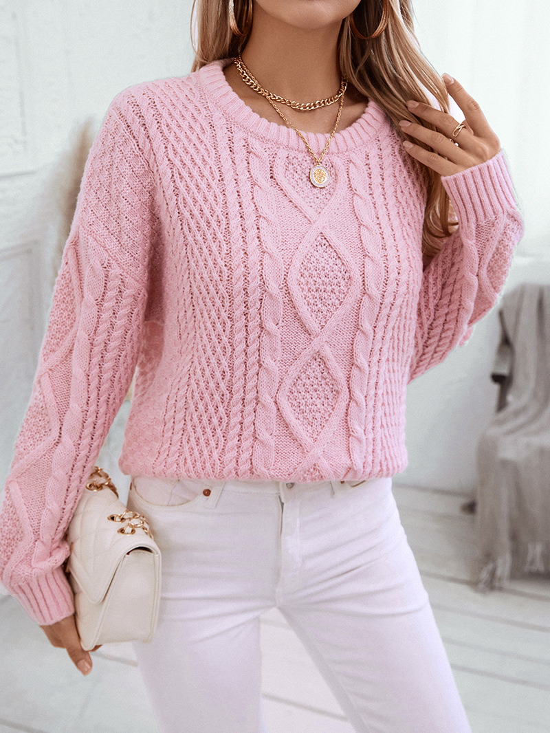 Round-neck Pullover Retro Cable Knit Sweater
