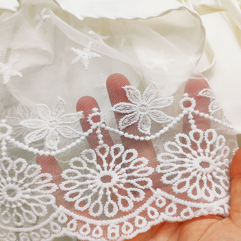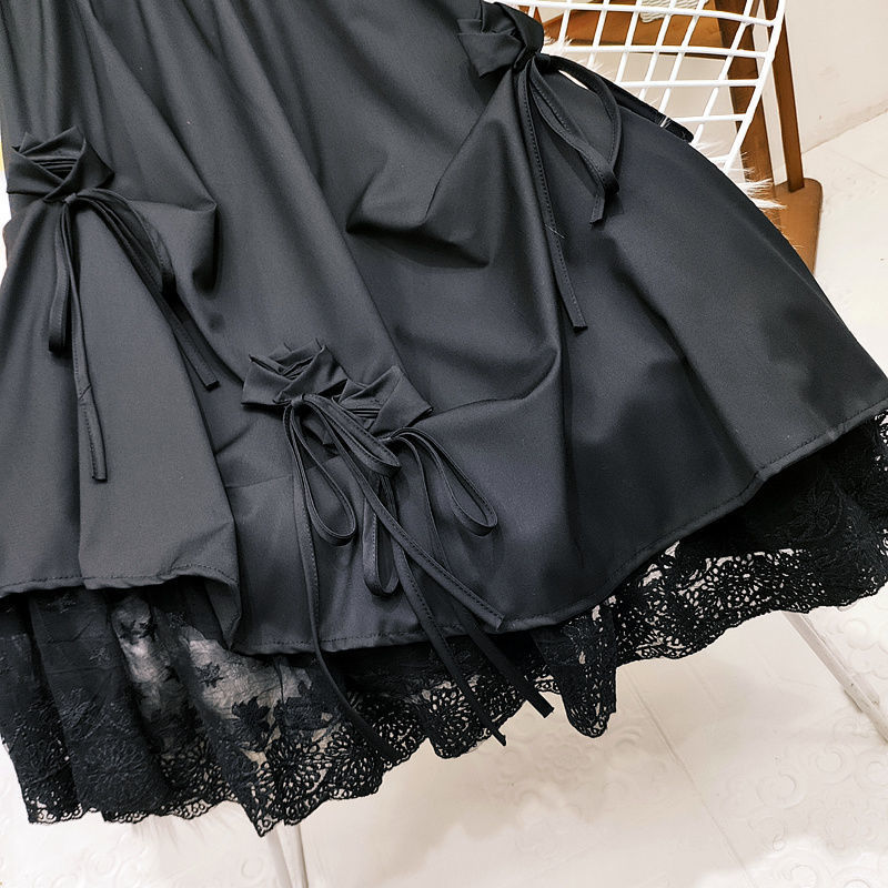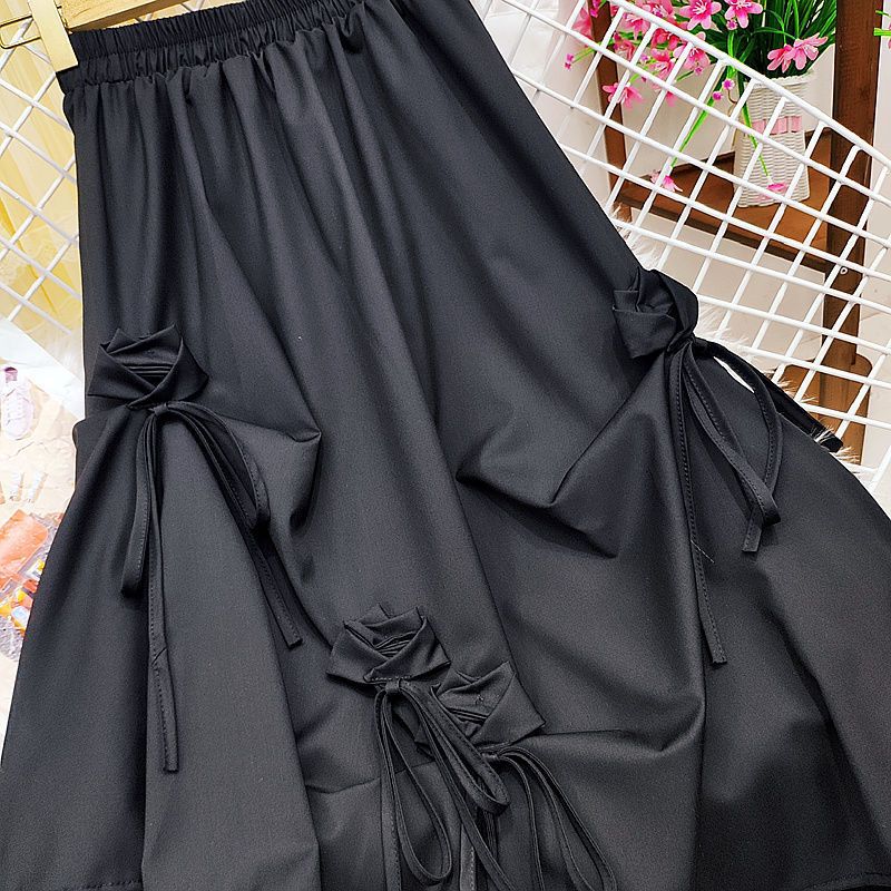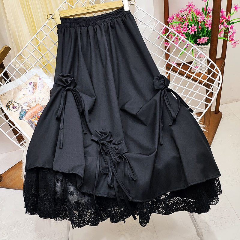 High-waisted Bow Heavy Work Spliced Lace A-line Midi Skirt