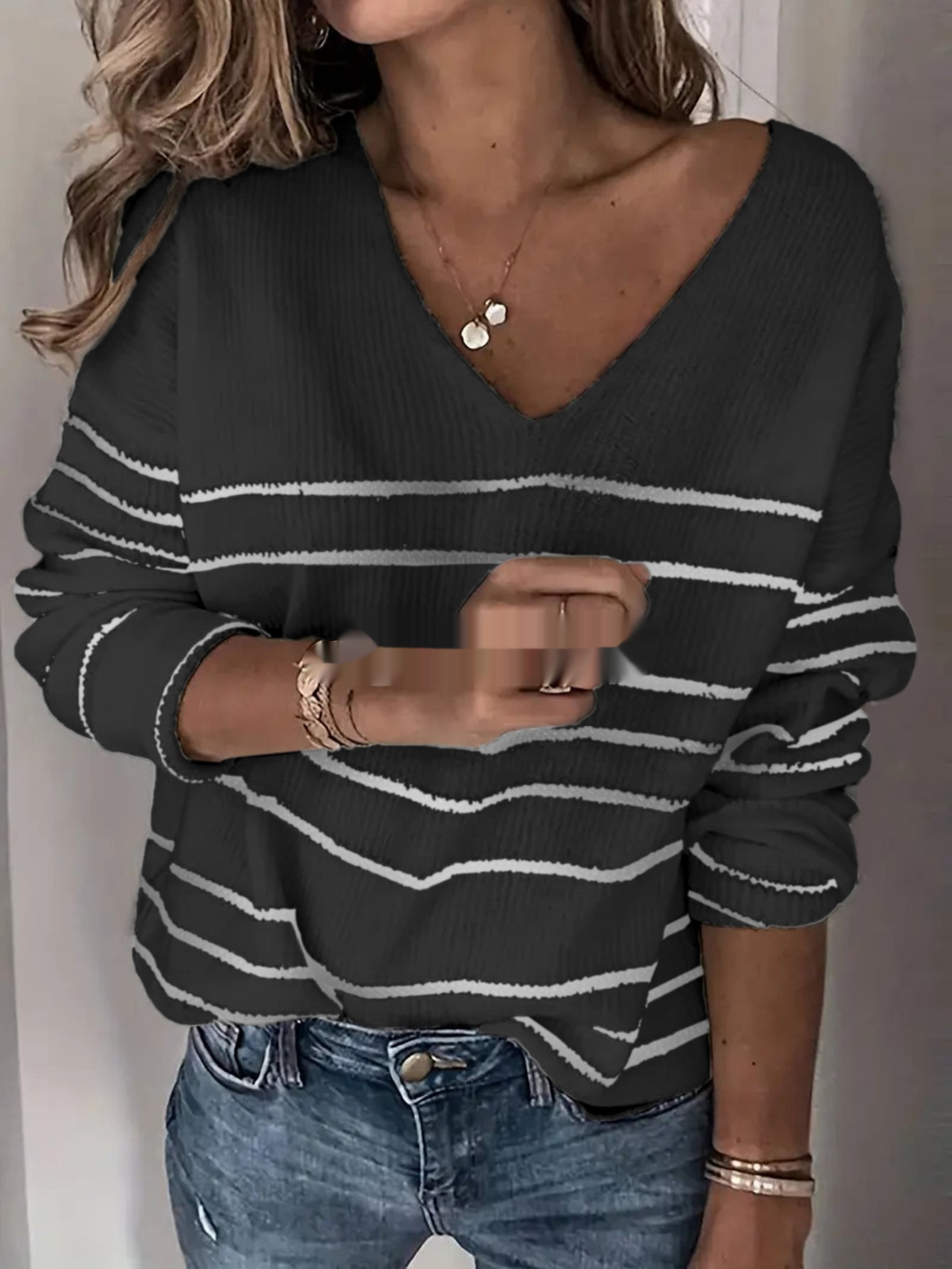 Knitted Striped V-neck Sweater For Women