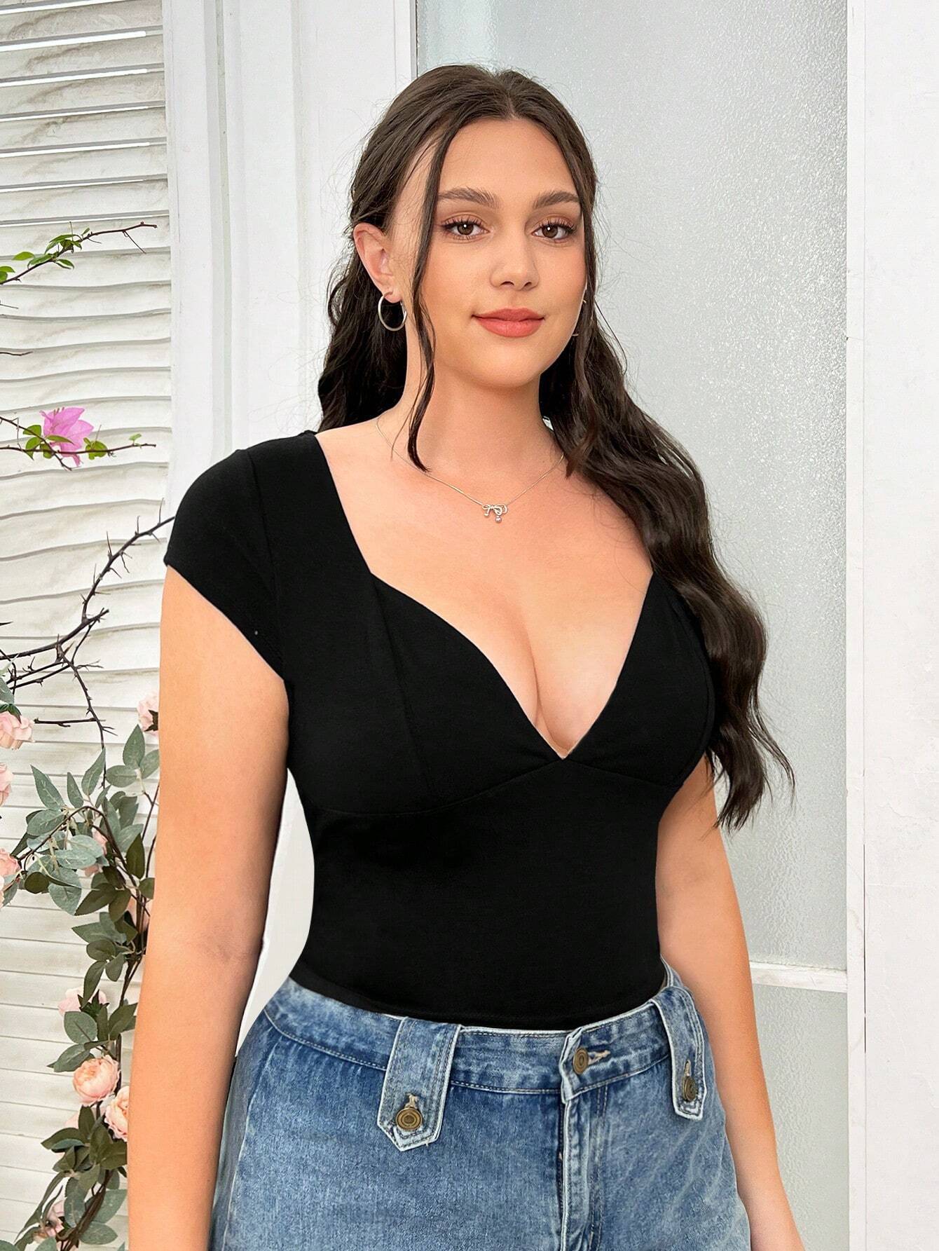 Sexy And Pure Charm V-neck Slim Short Sleeve T-shirt
