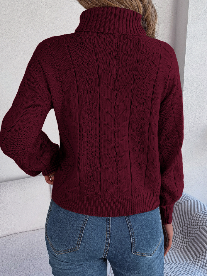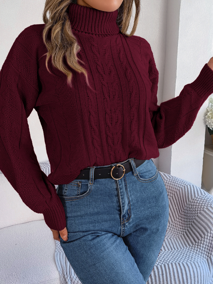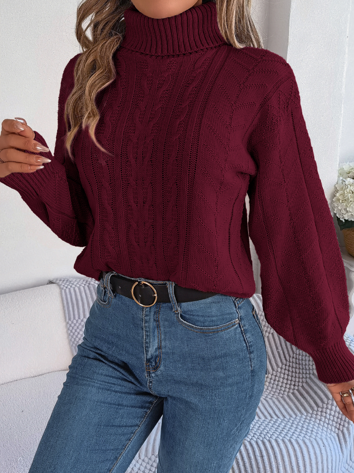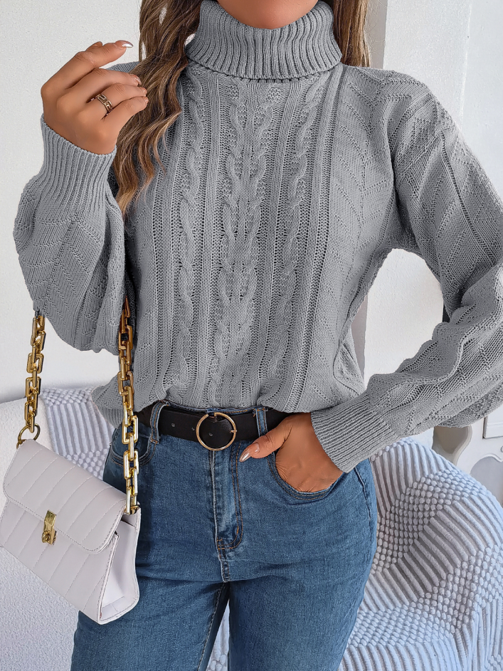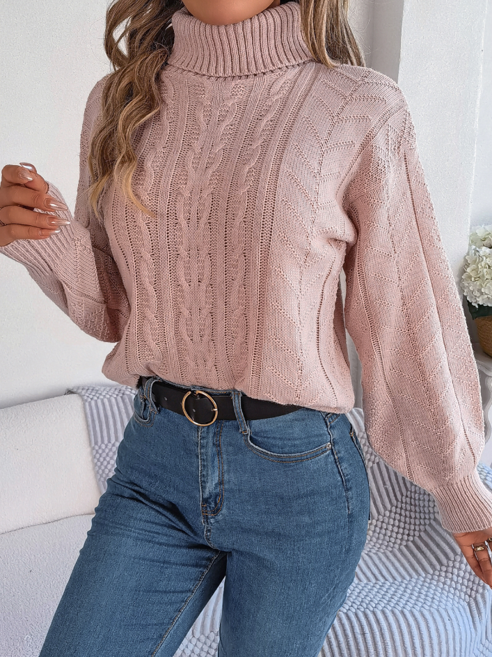 Women Casual Turtleneck Cable Knit Long Sleeve Pullover Sweater