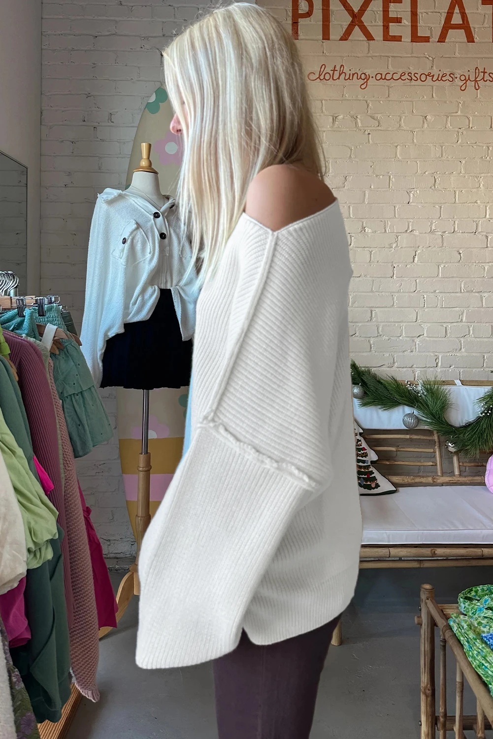 Women's Loose Casual Off-shoulder Asymmetric Collar Sweater