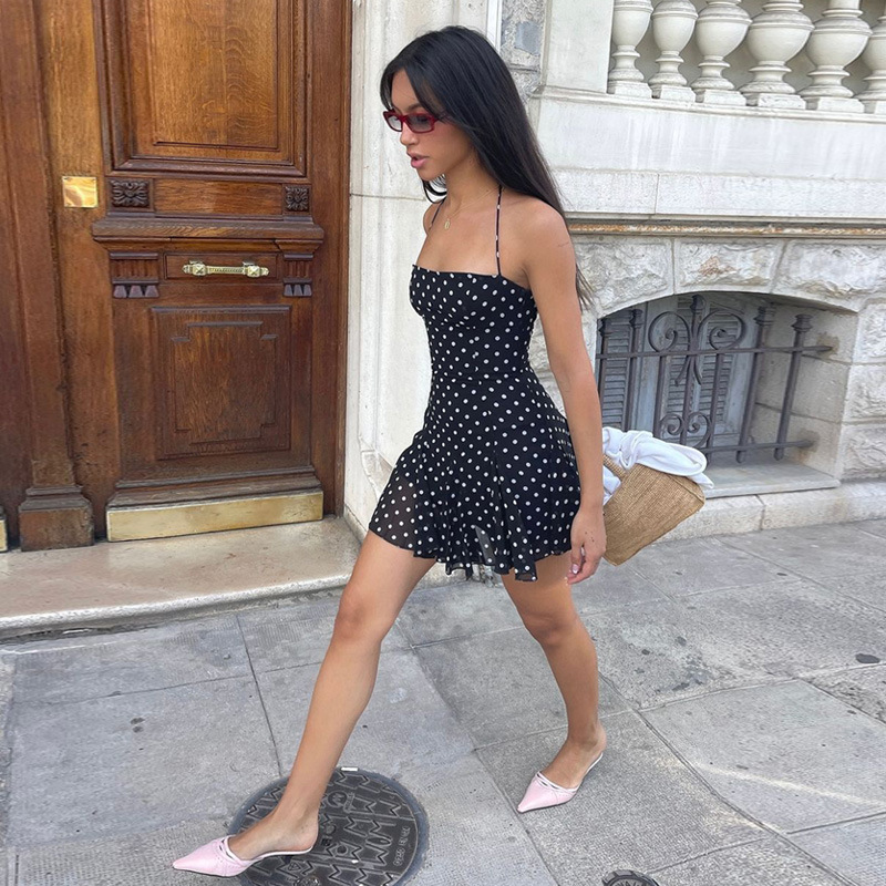 Sweet Little Short Dress With A Trendy Polka-dot Print