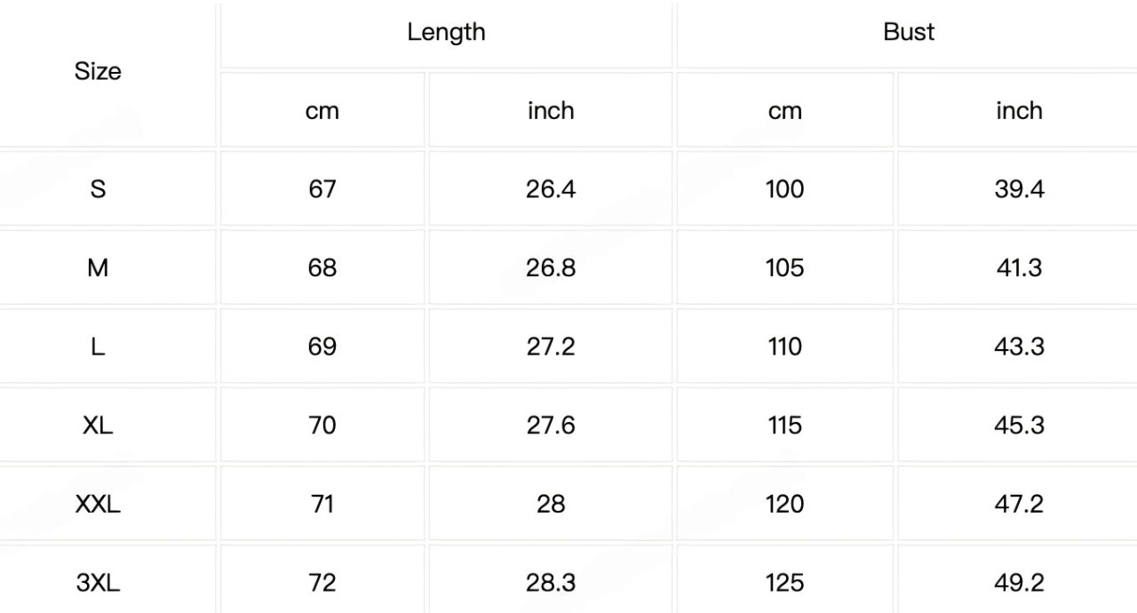 Note: 1. Asian sizes are 1 to 2 sizes smaller than European and American people. Choose the larger size if your size between two sizes. Please allow 2-3cm differences due to manual measurement. 2. Please check the size chart carefully before you buy the item, if you don't know how to choose size, please contact our customer service. 3.As you know, the different computers display colors differently, the color of the actual item may vary slightly from the following images.