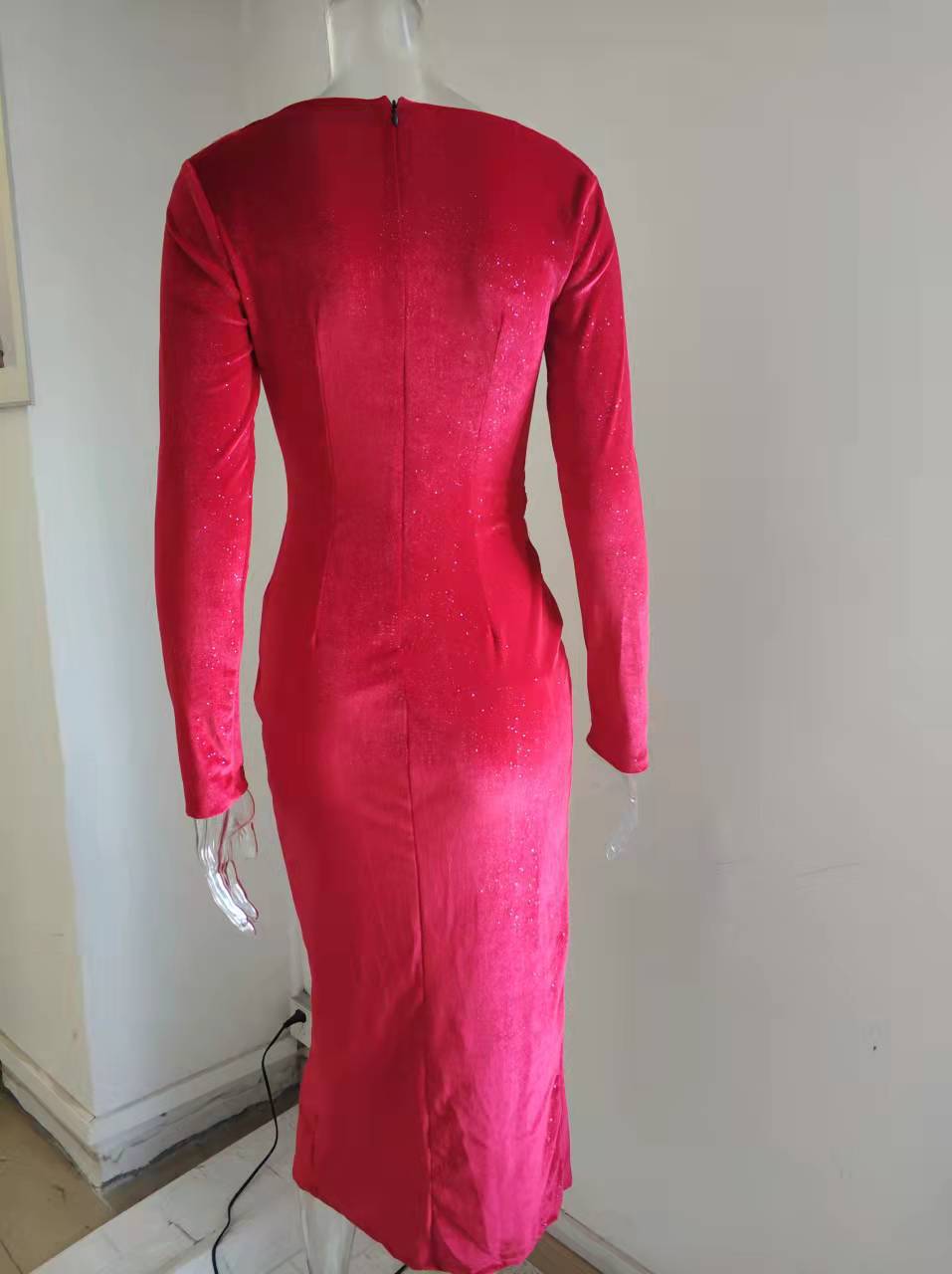 Women's V-neck Asymmetric Skirt Dress Gold Velvet Evening Dress