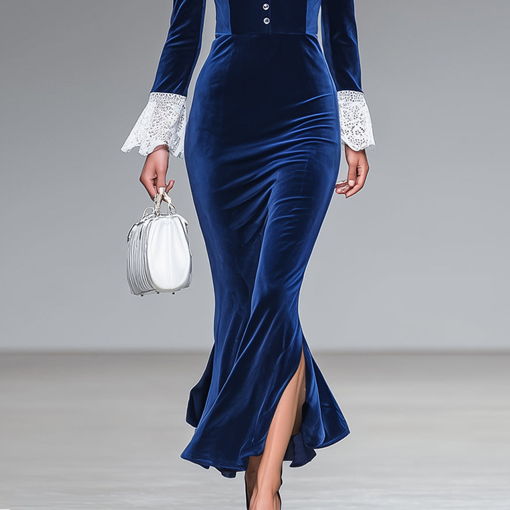 V-neck Long-sleeve Womens Elegant Slim-fit Dress With A Mermaid Skirt