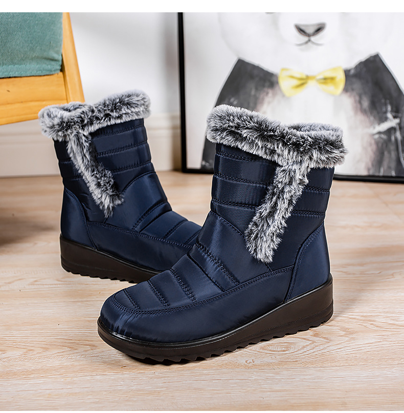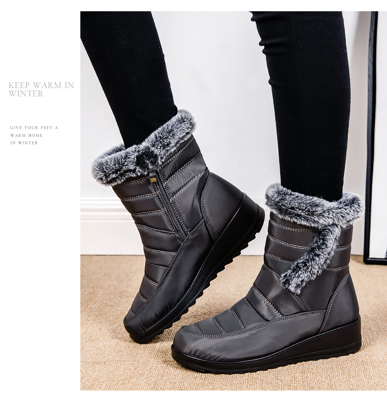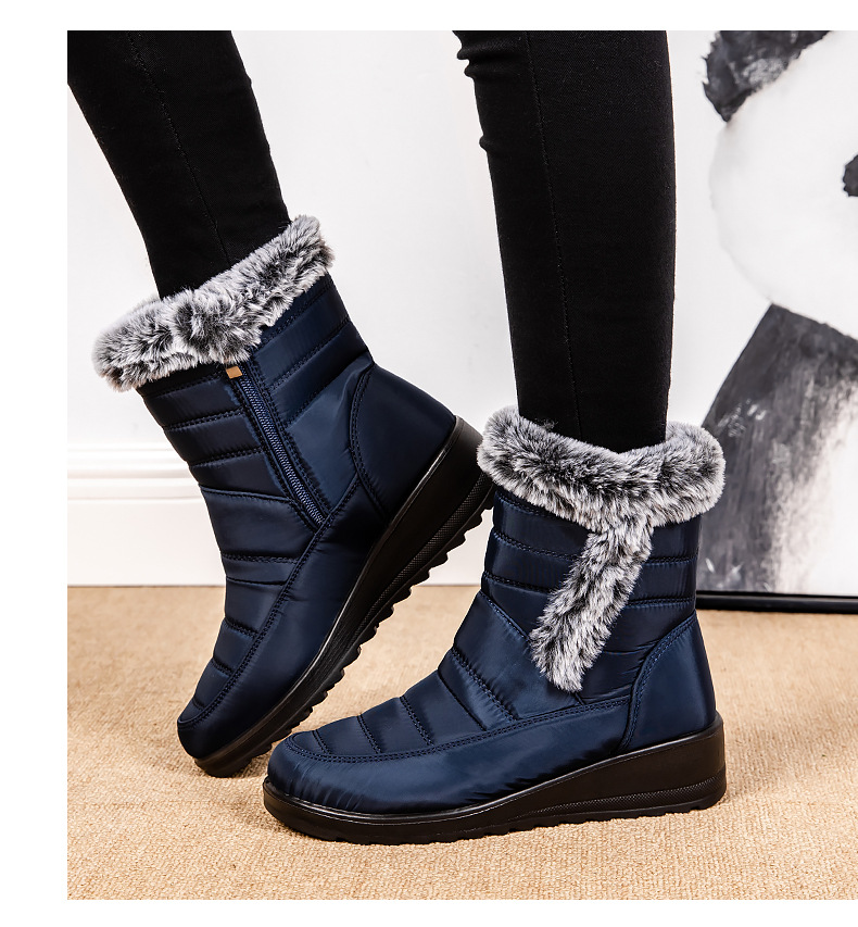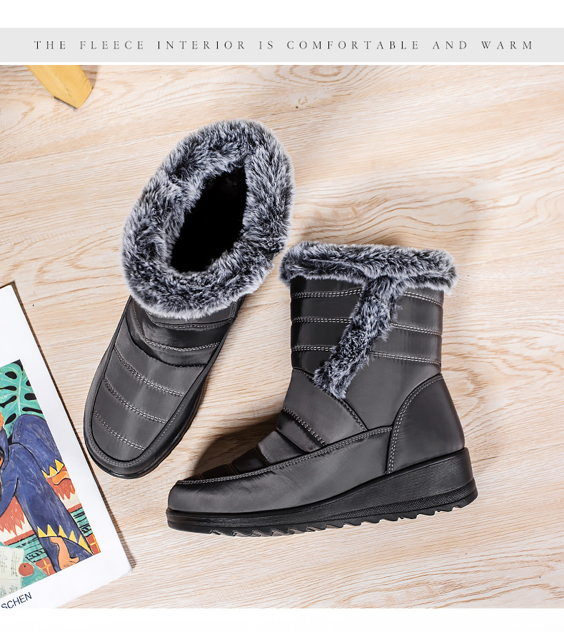 High Top Womens Snow Boots With A Faux Rabbit Fur Collar Side Chain Detailing And Waterproof Design For Maximum Warmth