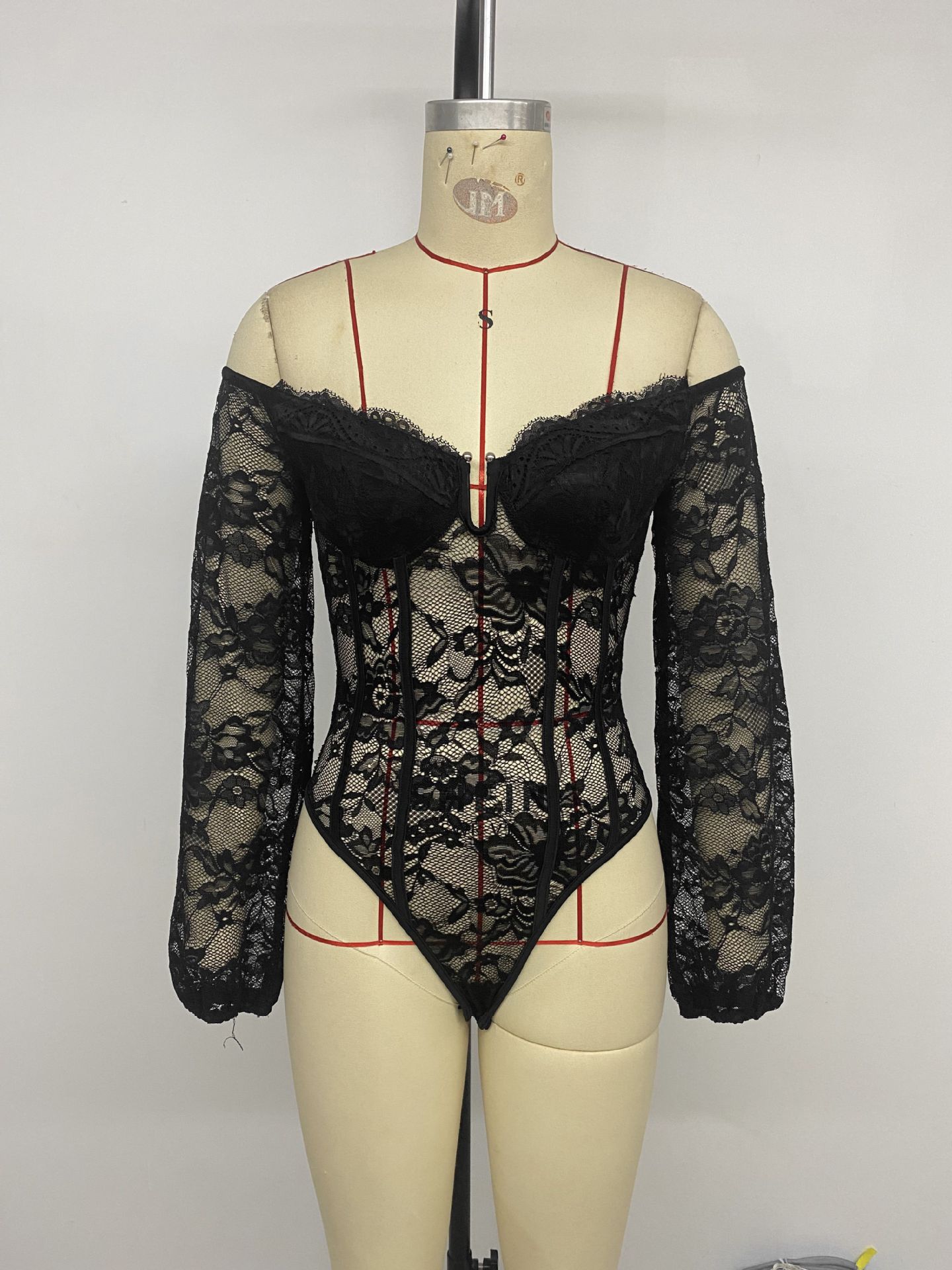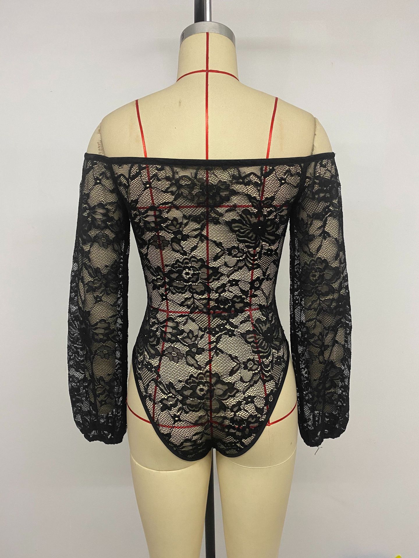 Lace V-neck Off-shoulder Long Sleeve Elegant Sexy Jumpsuit
