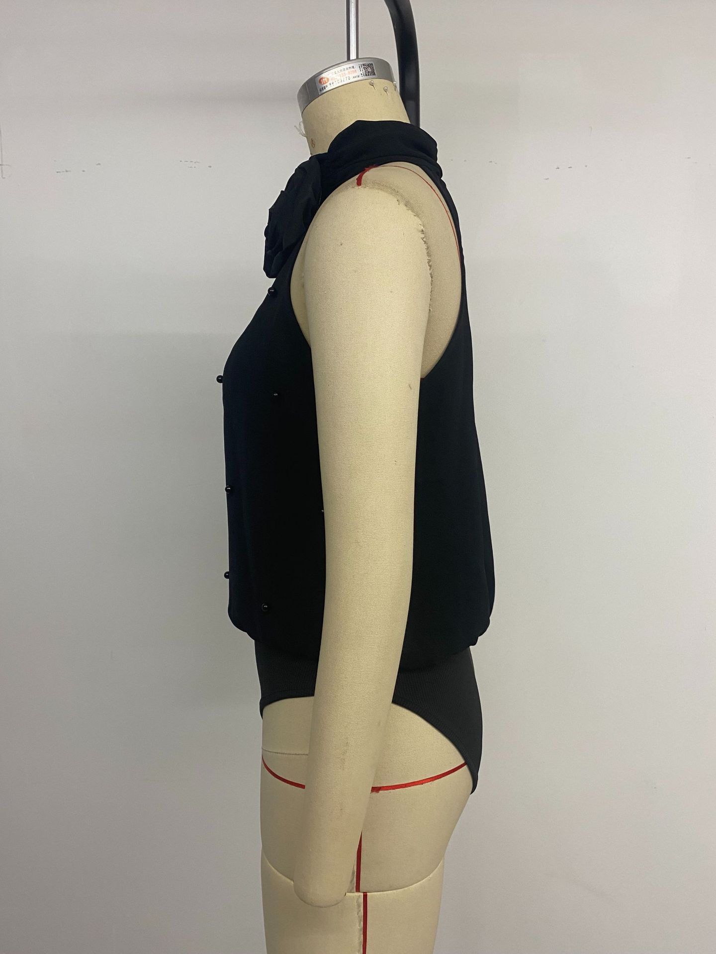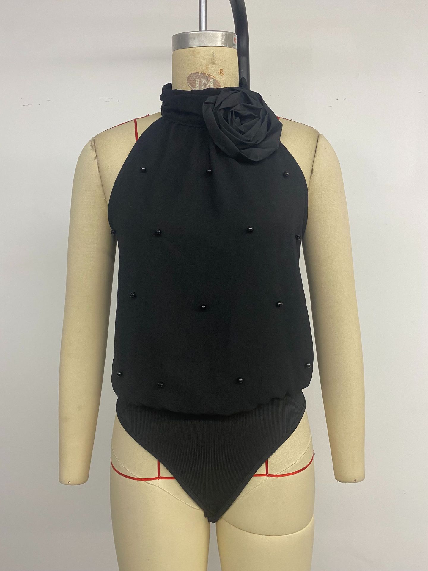 Sexy Elegant Style Three-dimensional Flower Half Turtleneck Halter Jumpsuit