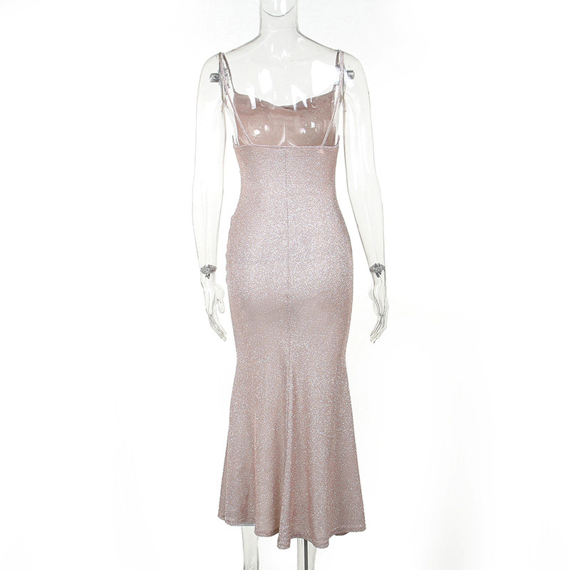 Womens Spaghetti-Strap Sparkly Evening Dress