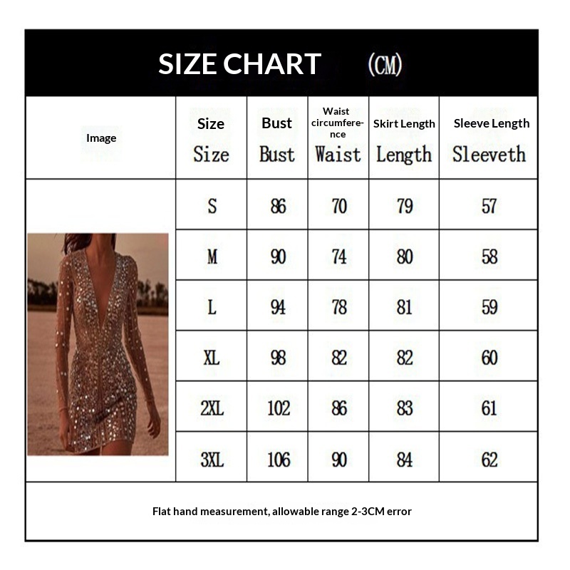 Deep V Sheer Gold Embellished Bodycon Dress With Long Sleeves
