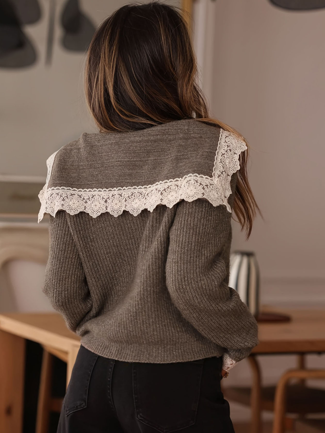 Women's Lace-trimmed Knitted Cardigan Sweater Top