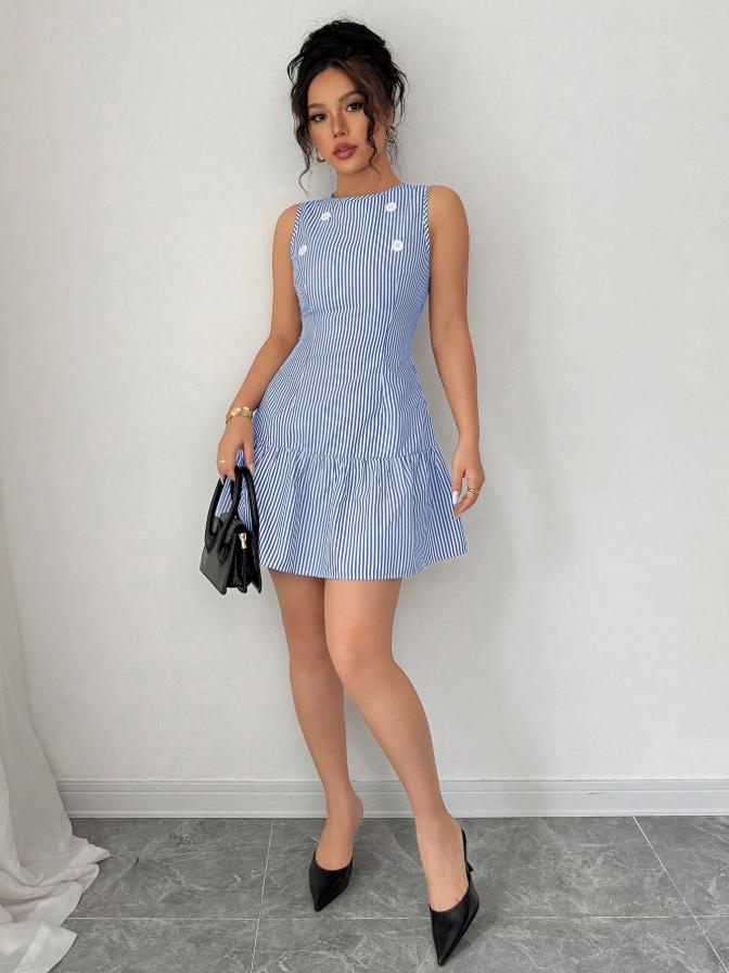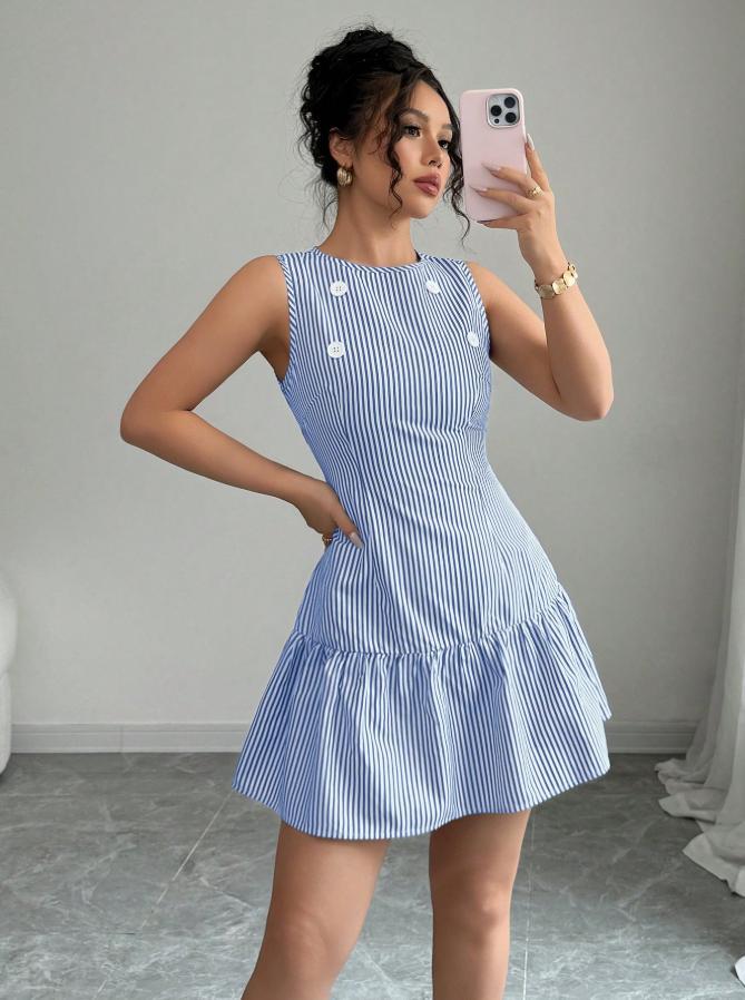 Womens Ruched A-Line Skirt Sleeveless Womens Dress