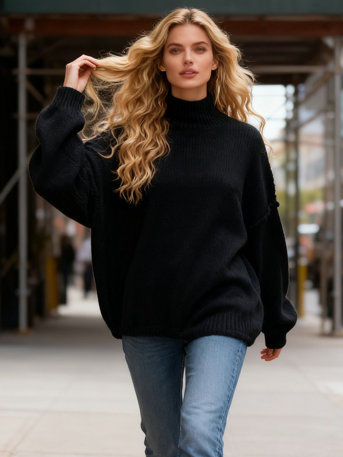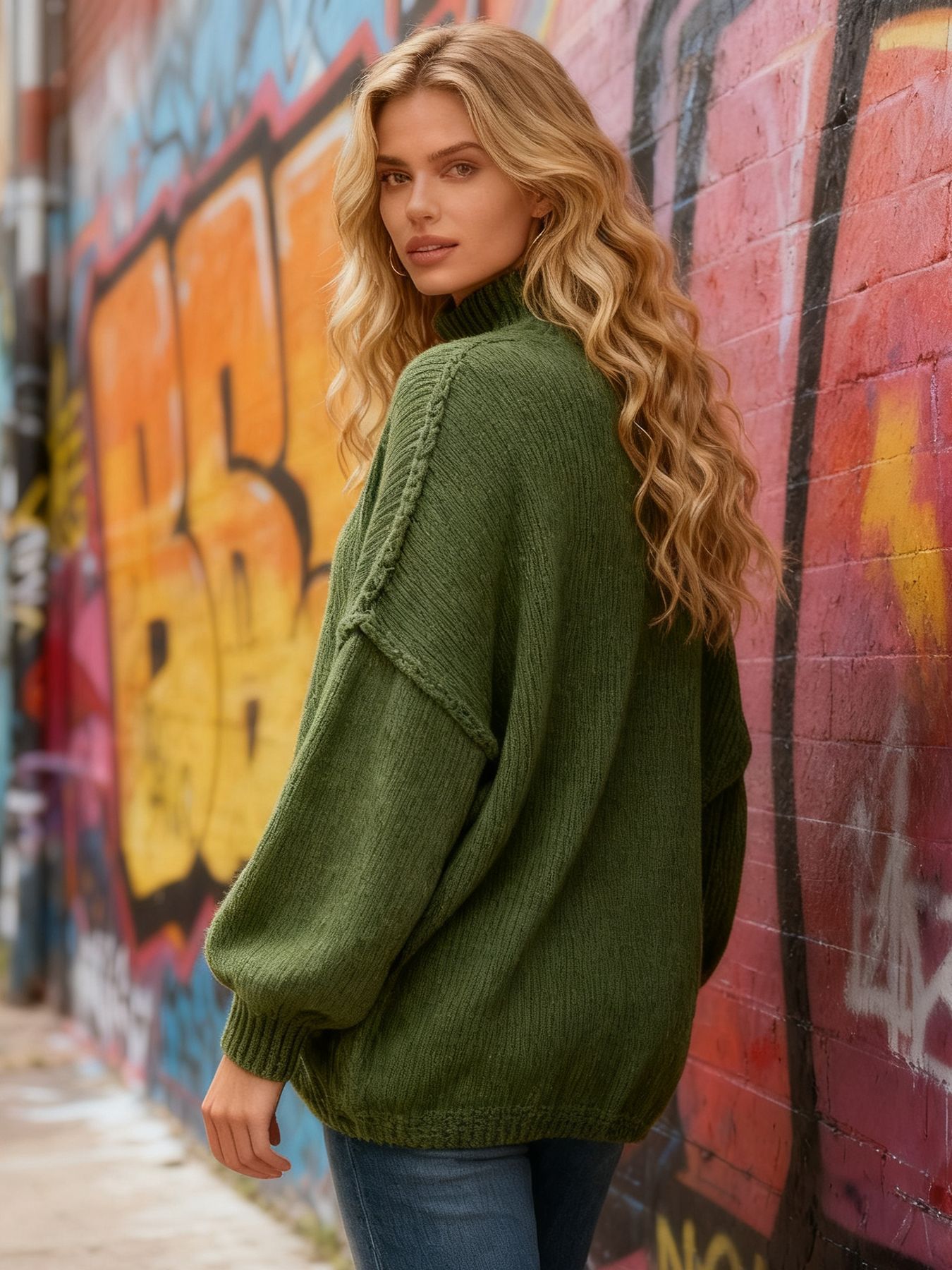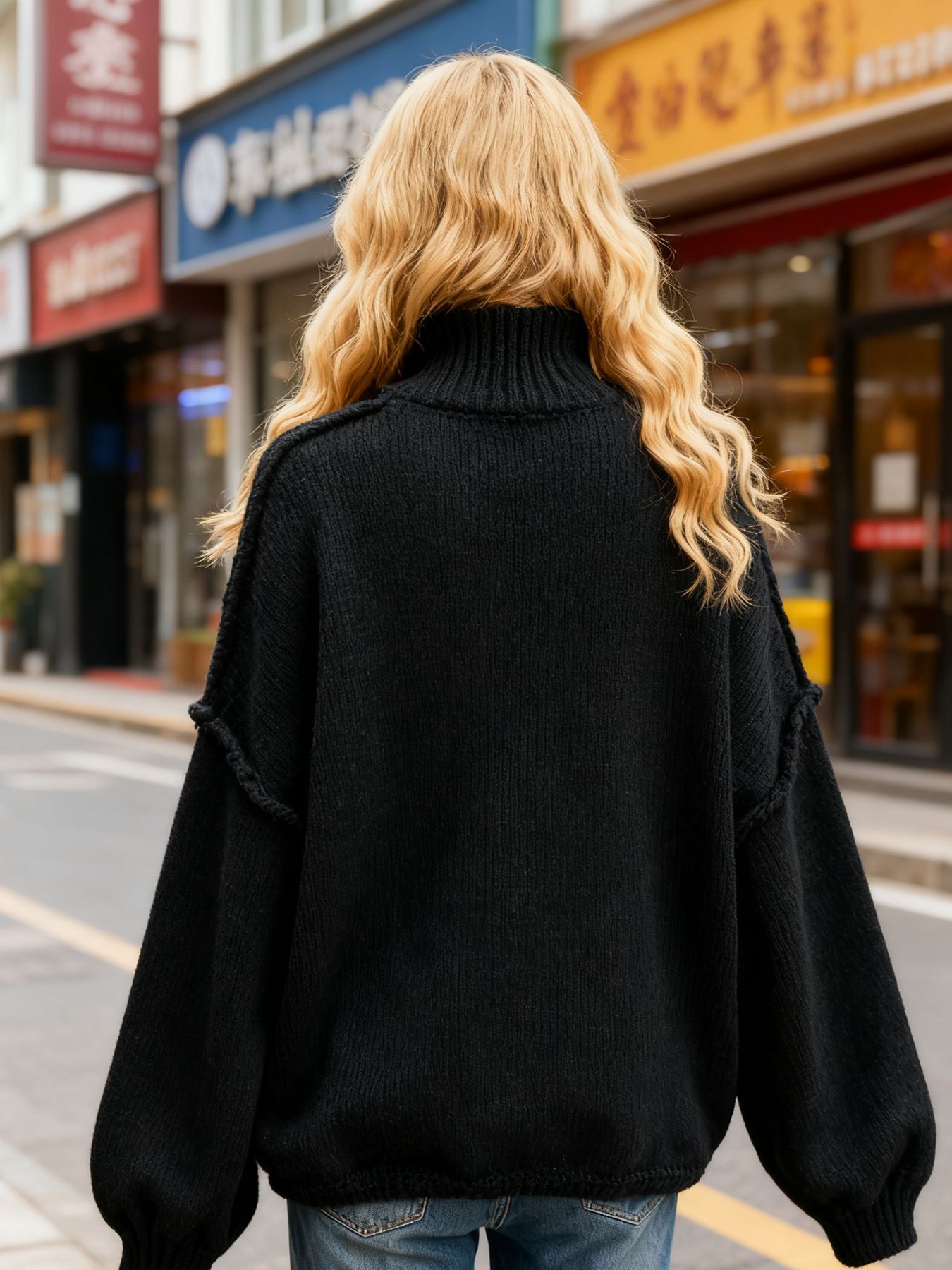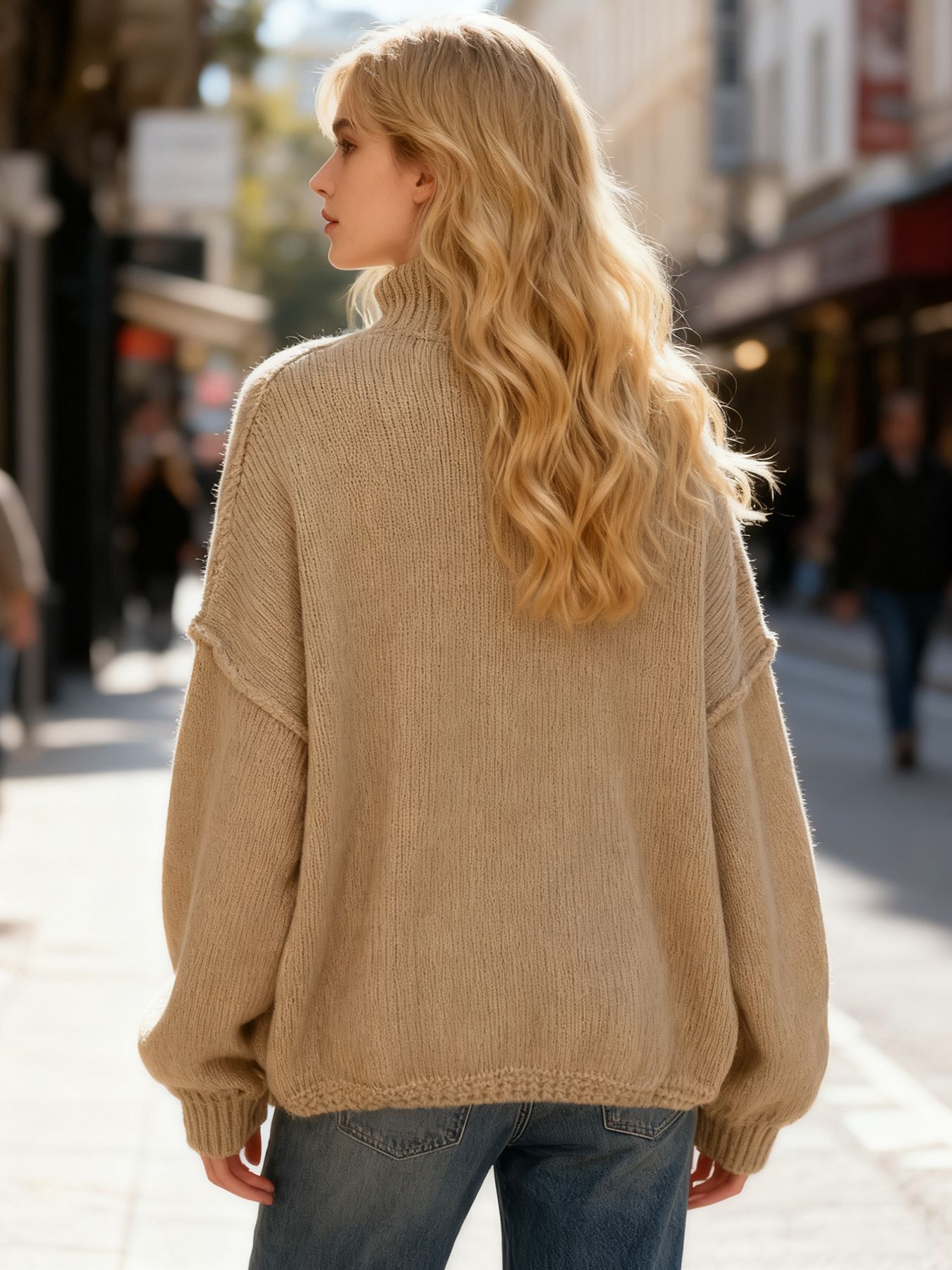 Women's Semi-high Neck Solid Color Knitted Sweater
