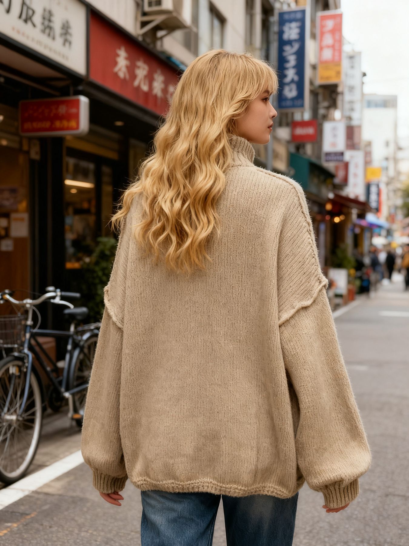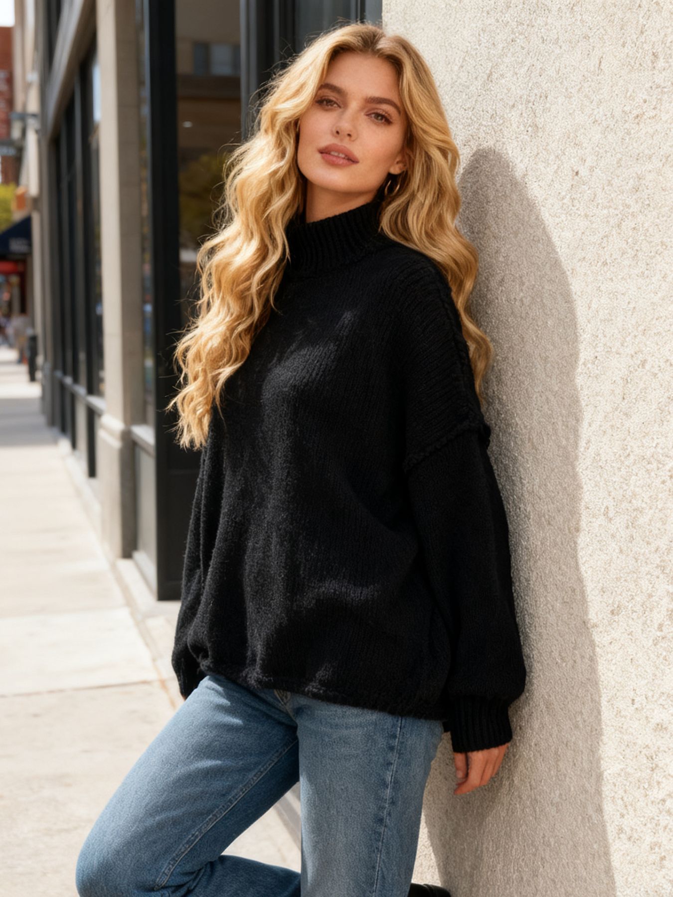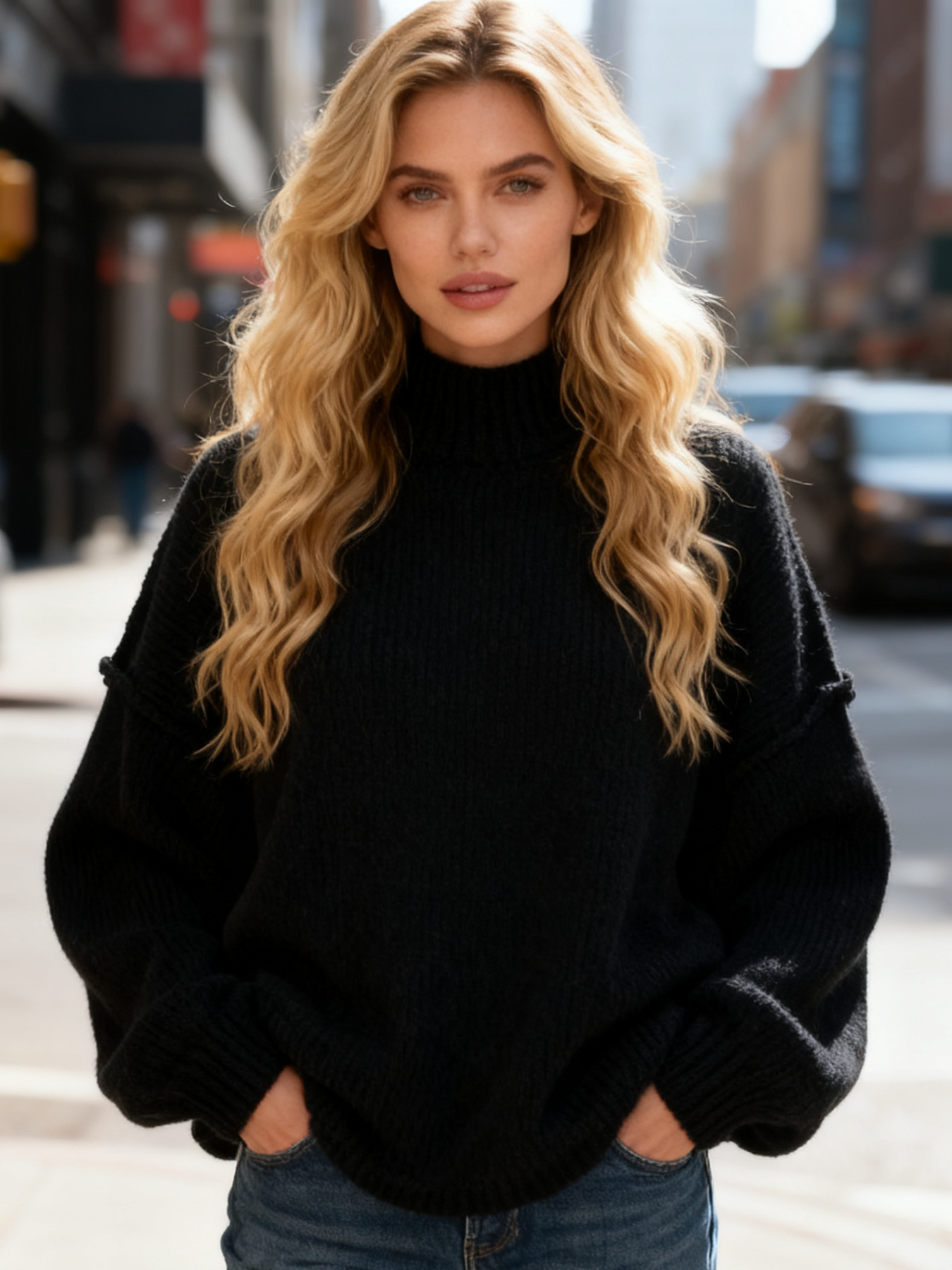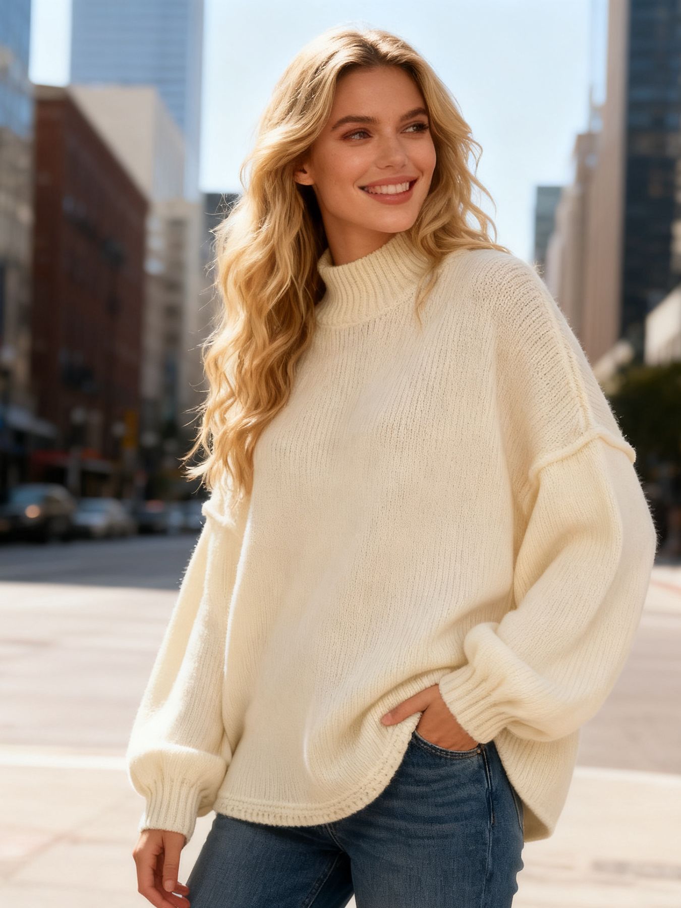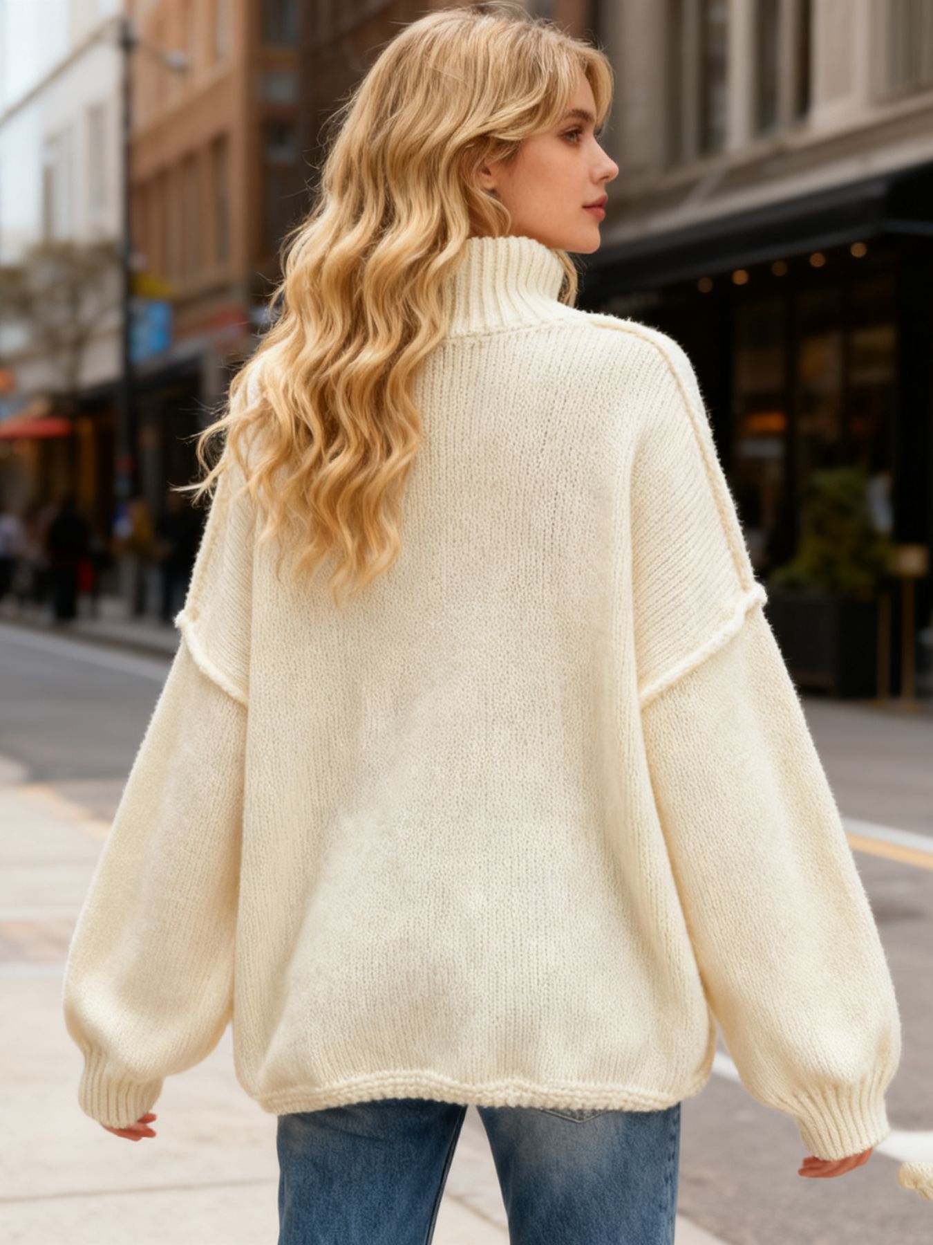 Women's Semi-high Neck Solid Color Knitted Sweater