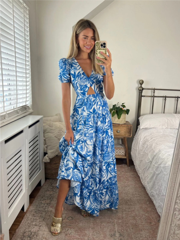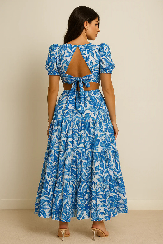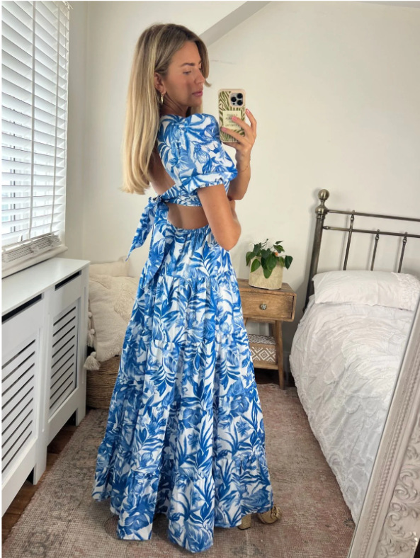 Womens Midriff-baring Backless Lace-up Printed Dress