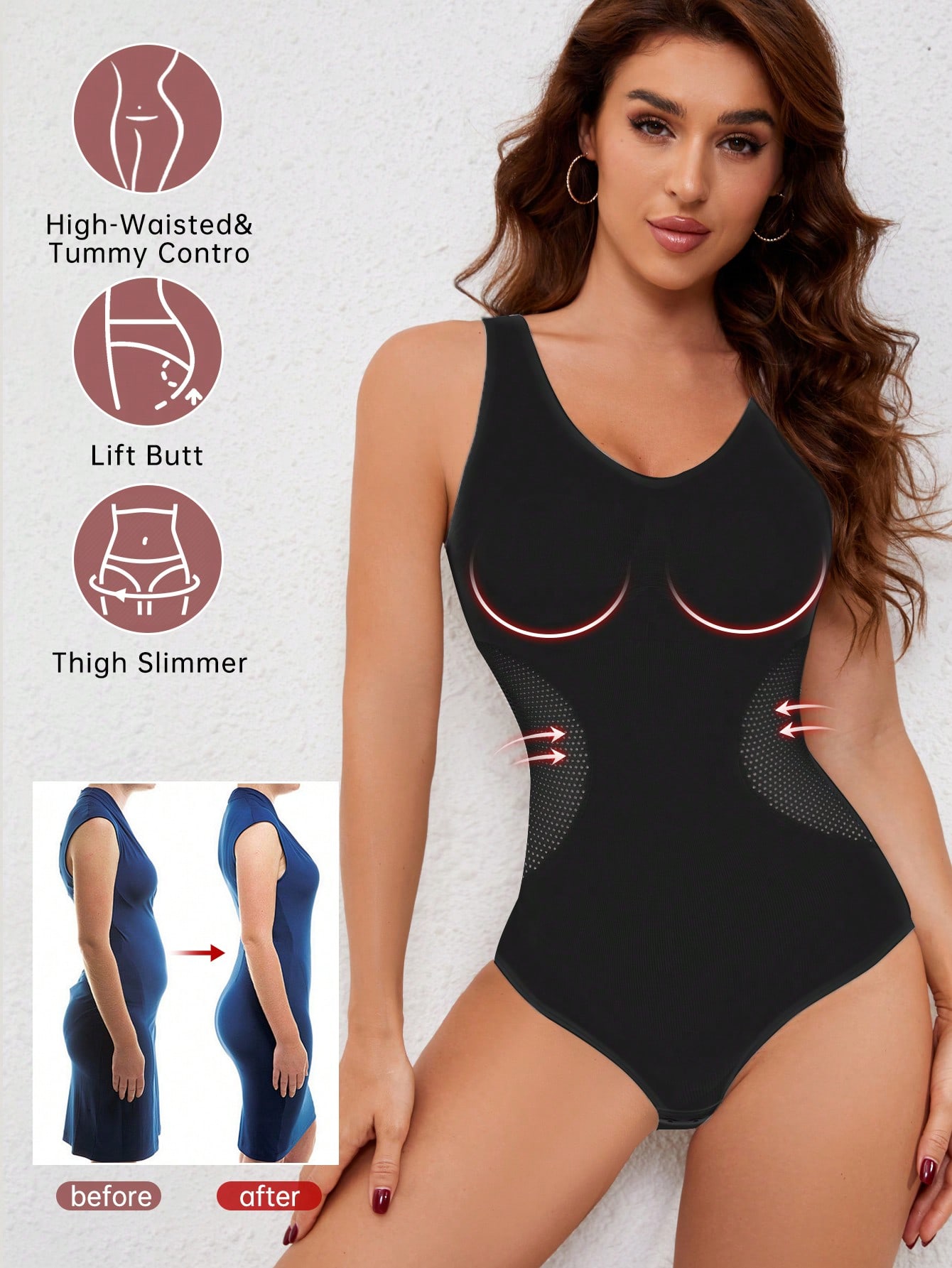 Streamlines your upper and lower body in one piece. No bulky layers—just smooth, lifted curves from bust to thigh