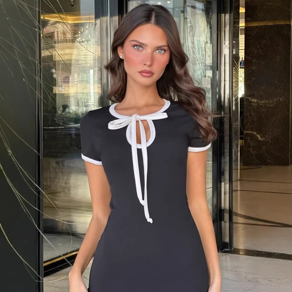 Lace-up Color-block Minimalist Slim-fit Versatile Dress