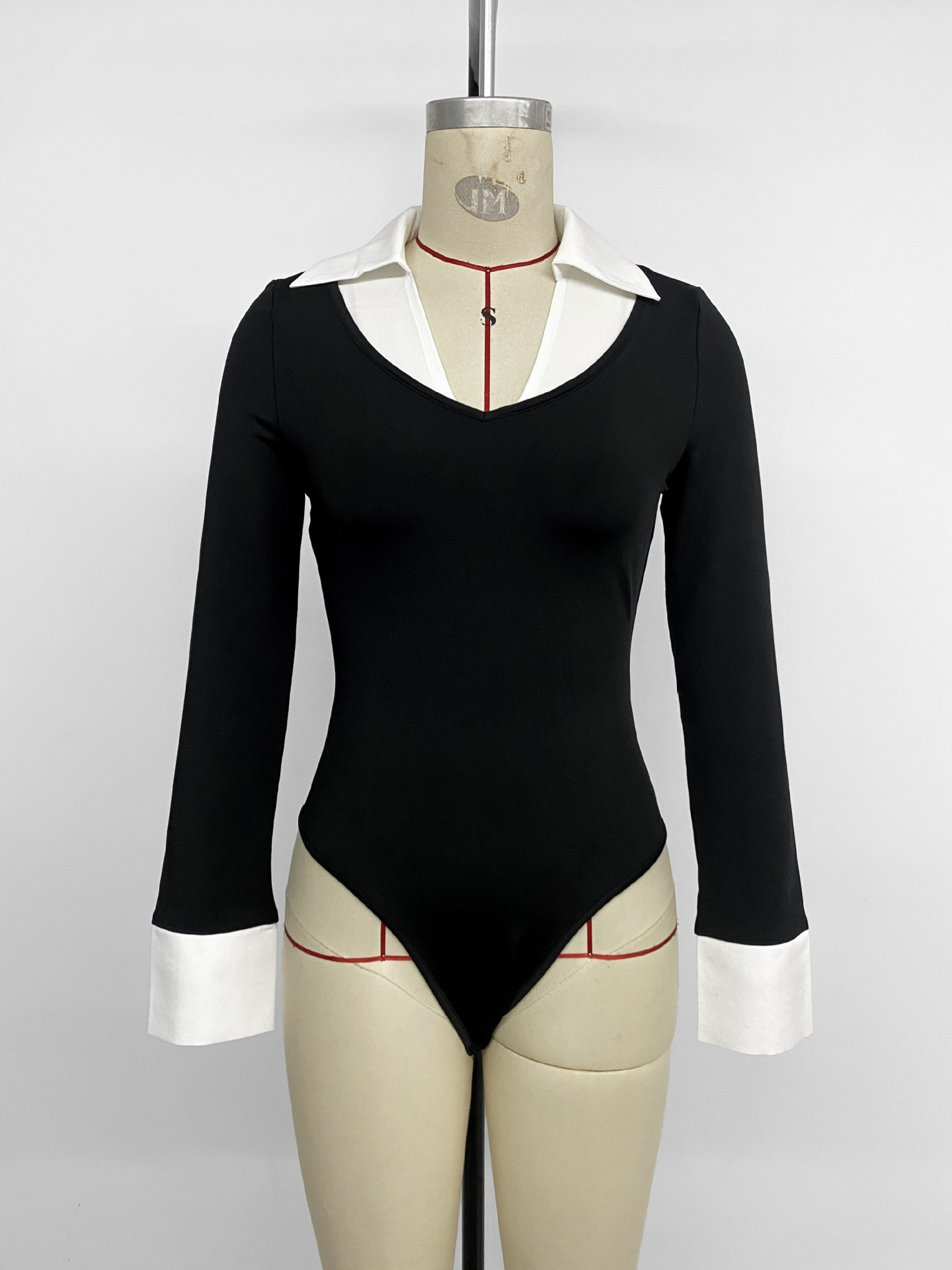 Female Contrasting Lapel Patchwork Fake Two-piece Jumpsuit
