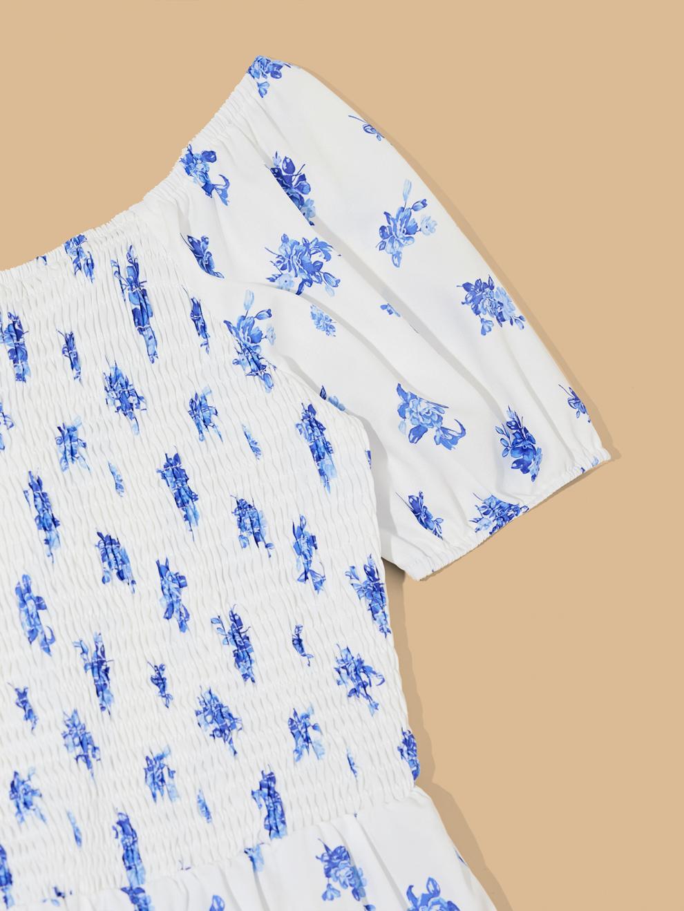 Color: White base with blue flowers