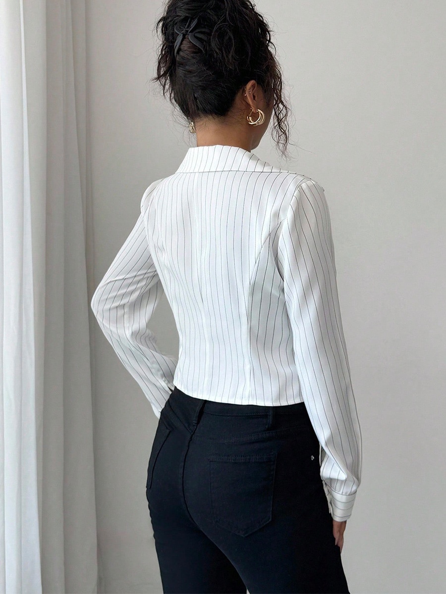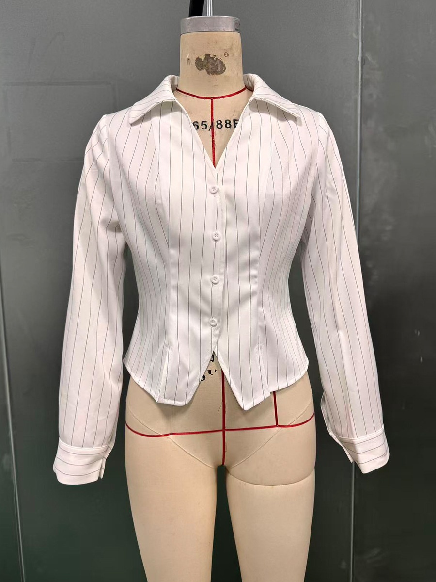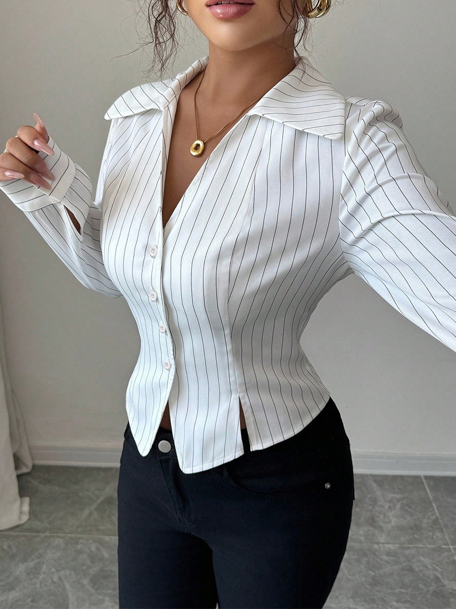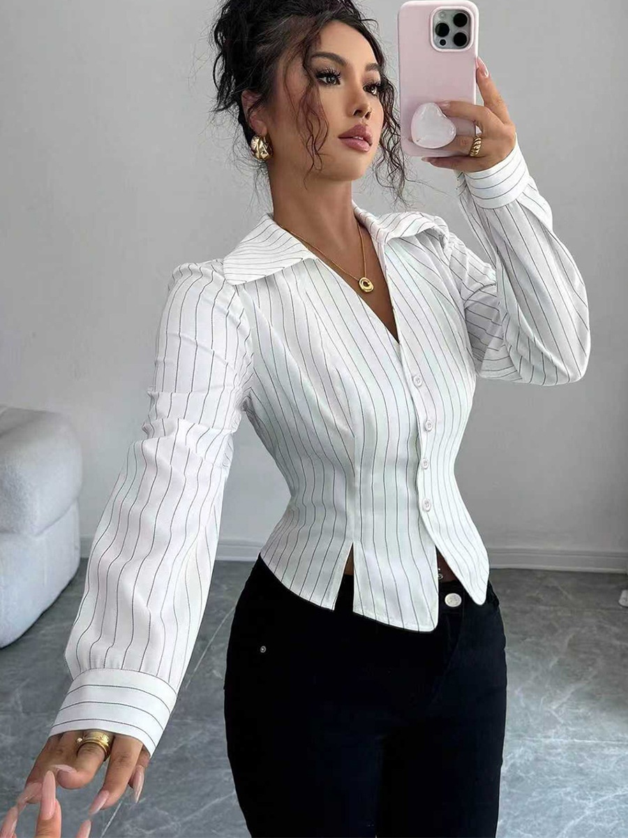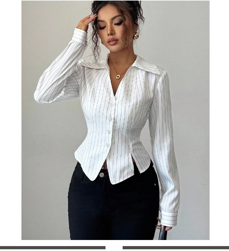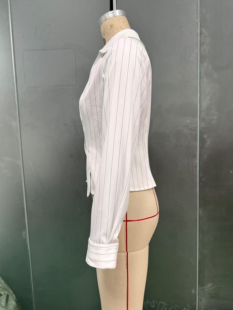 Autumn New Temperament Stripe Long Sleeve Shirt Women's Clothing